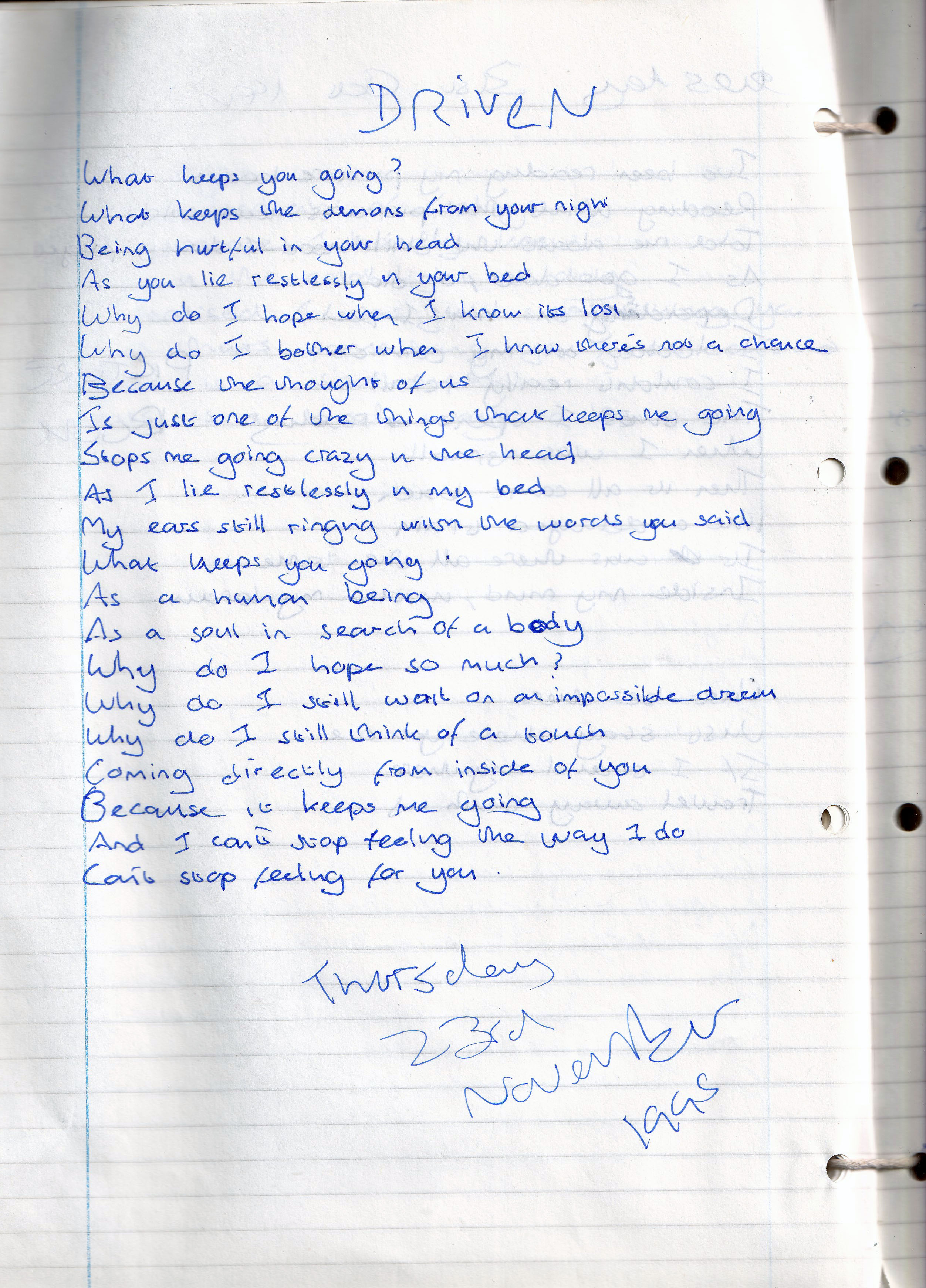 Driven – Written Thursday 23rd November 1995 (Aged 20)