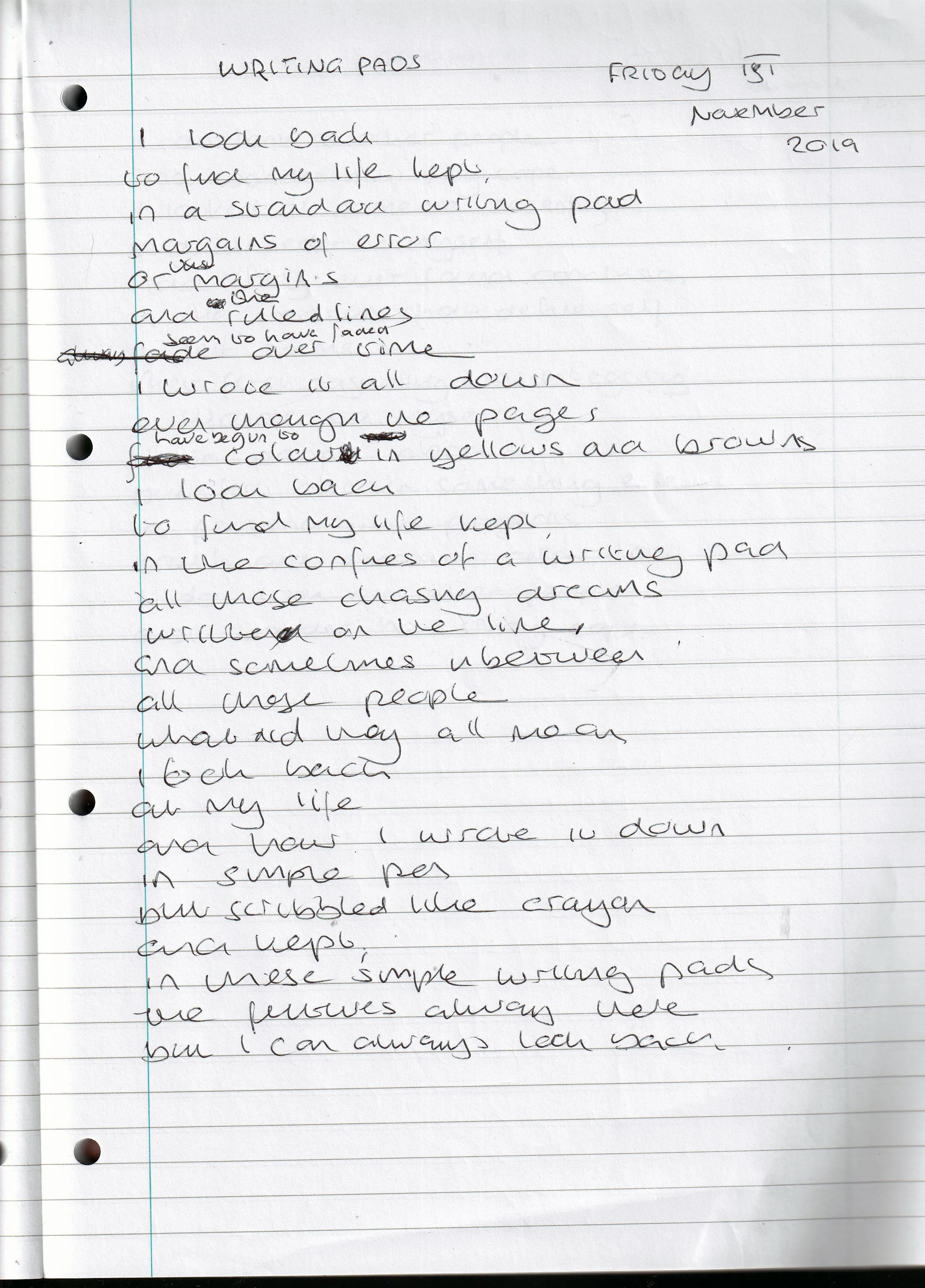 Writing Pads – Written Friday 1st November 2019 (Aged 44)