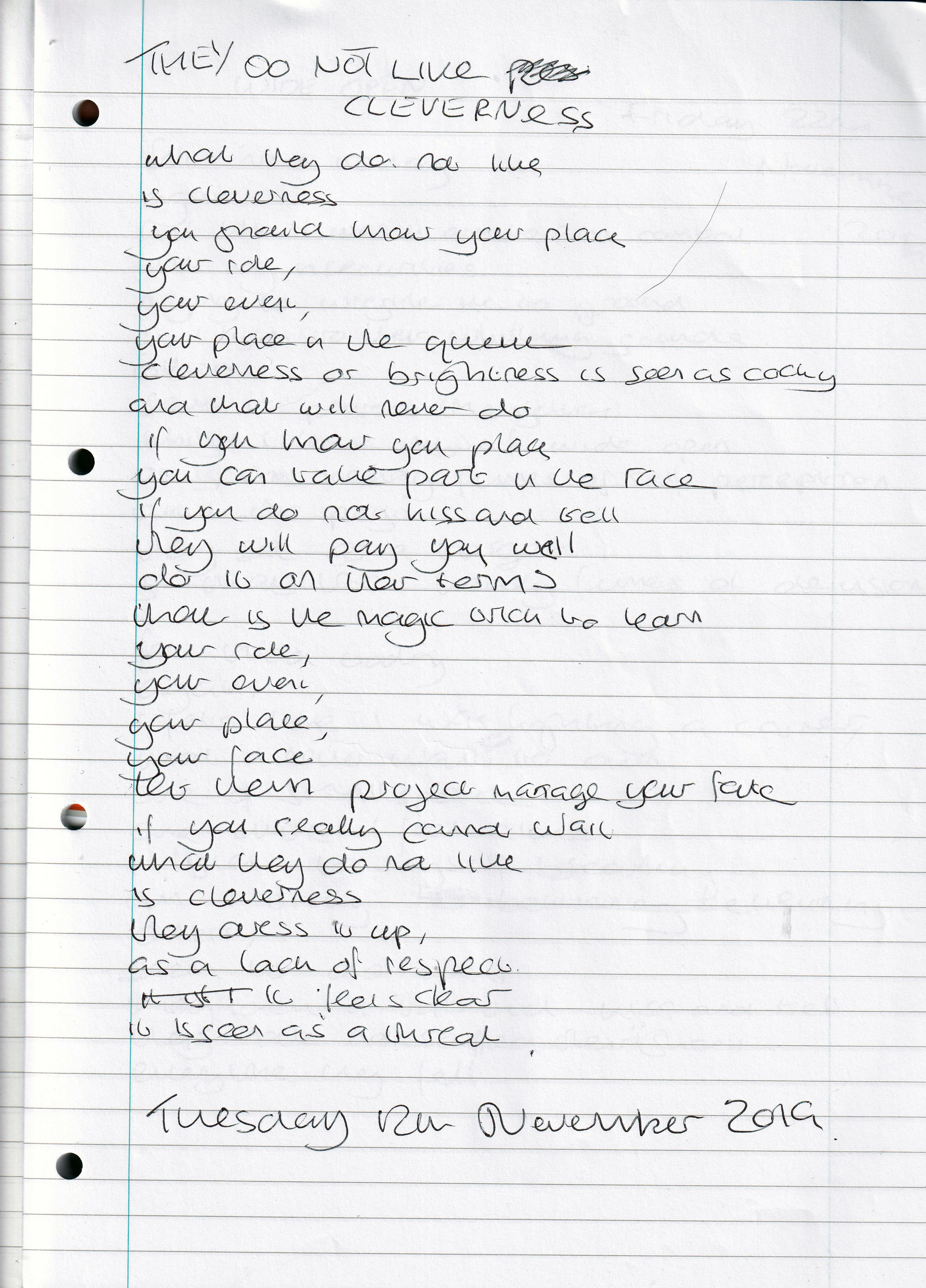 They Do Not Like Cleverness – Written Tuesday 12th November 2019 (Aged 44)