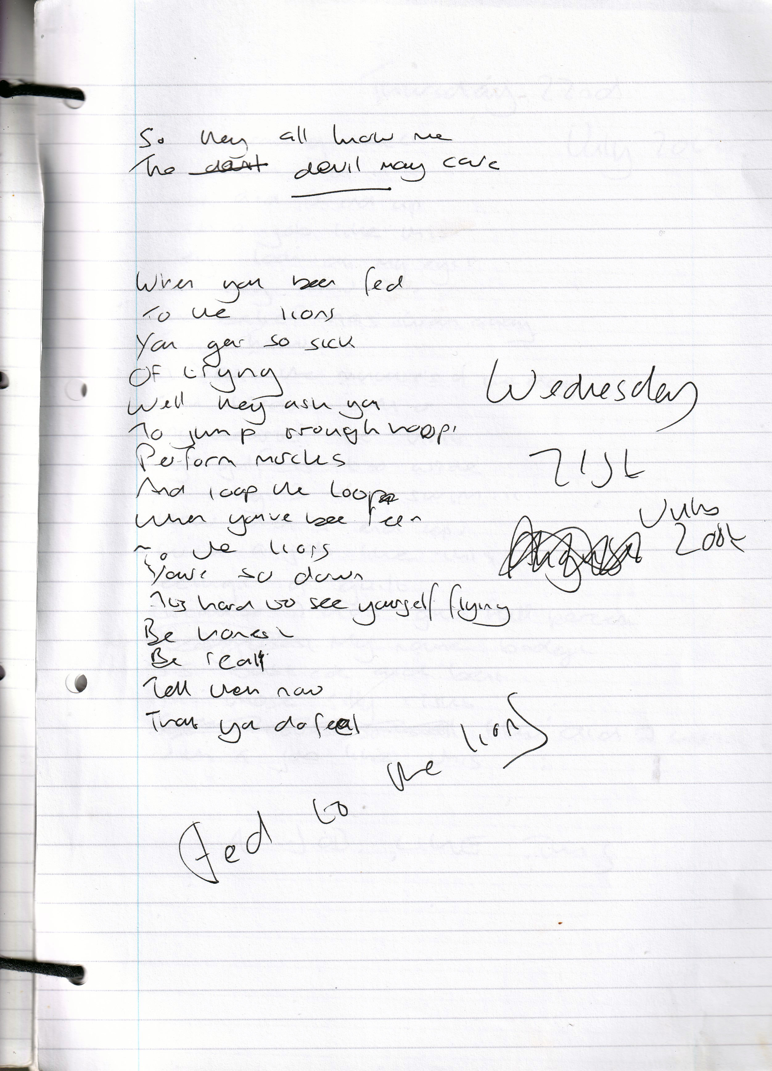 Fed to The Lions – Written Wednesday 21st July 2004 (Aged 29)