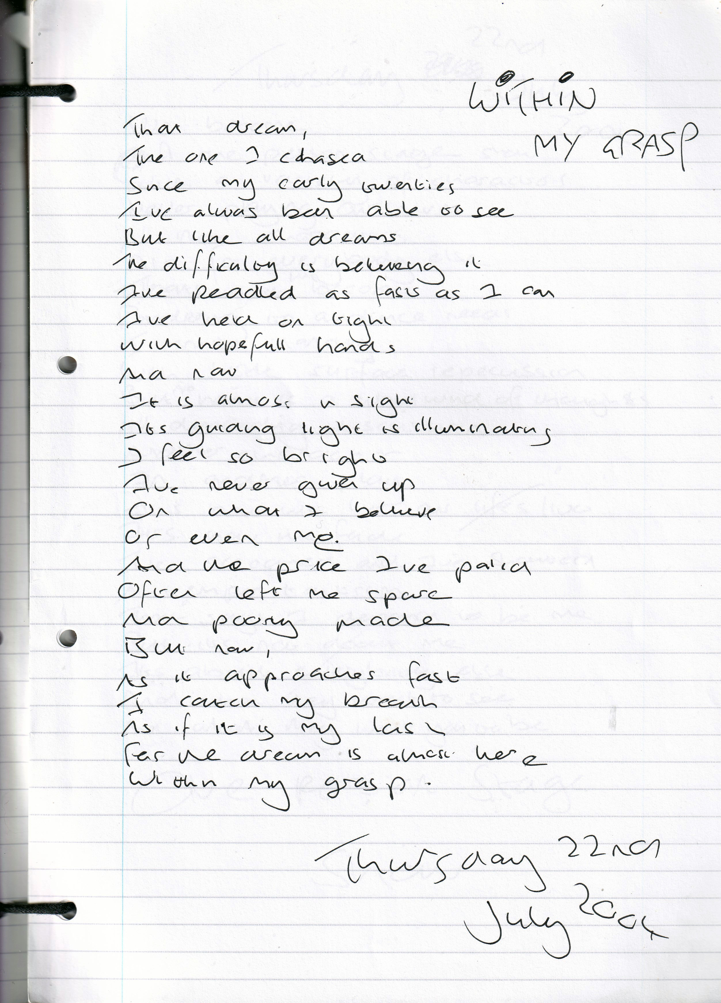 Within My Grasp – Written Thursday 22nd July 2004 (Aged 29)