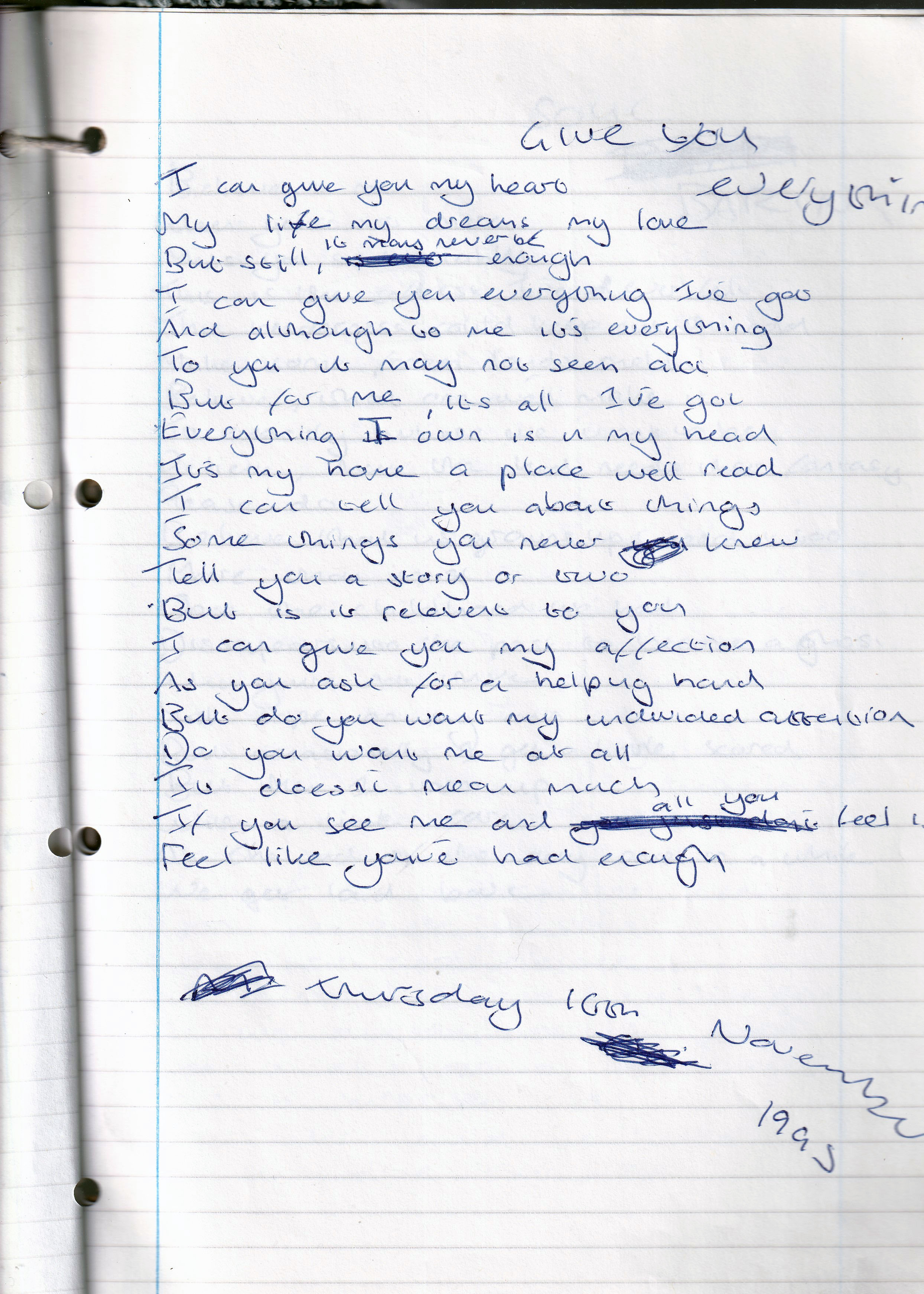 Give You Everything – Thursday 16th November 1995 (Aged 20)