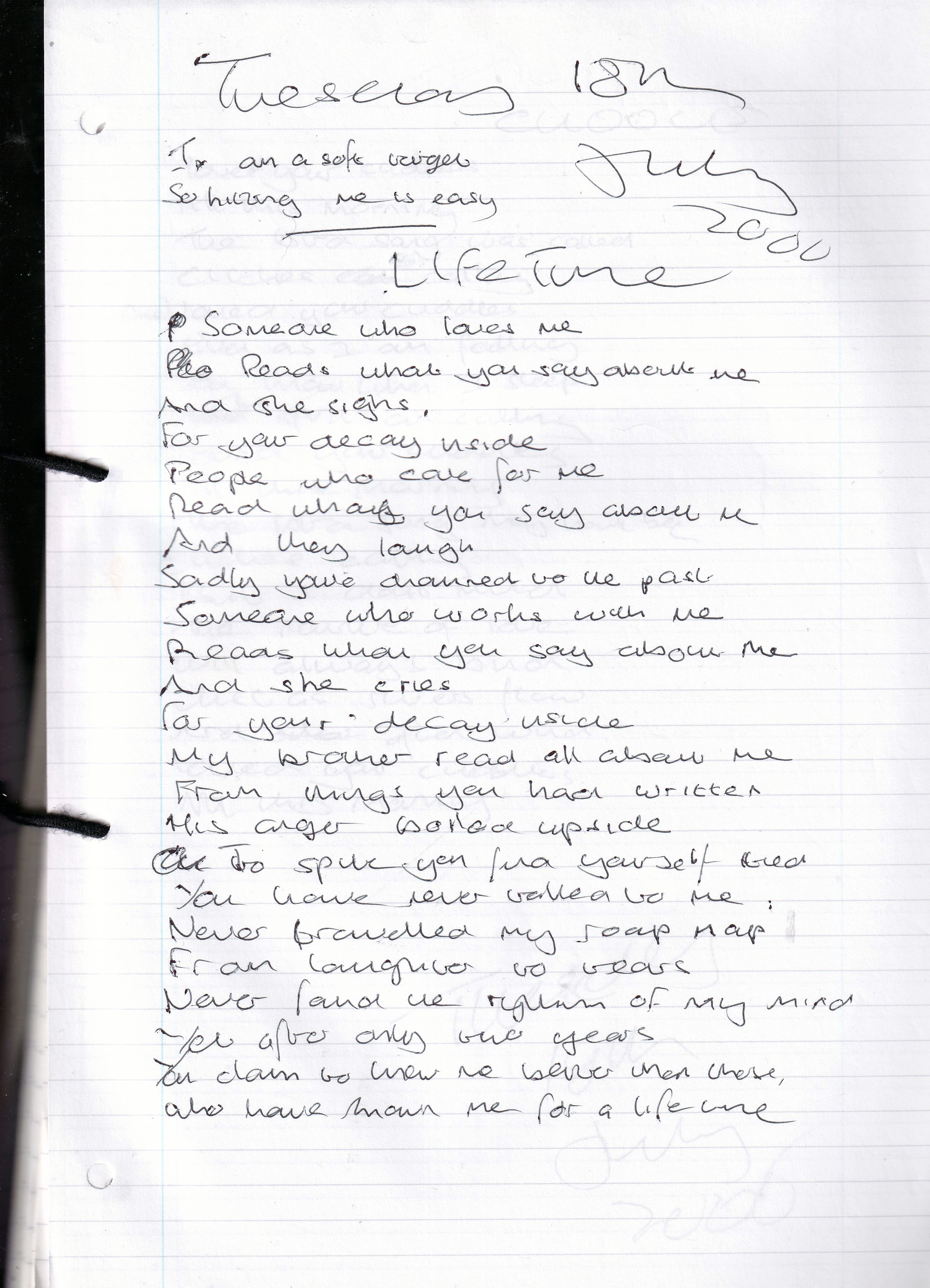 Lifetime – Written Tuesday 18th July 2006 (Aged 31)