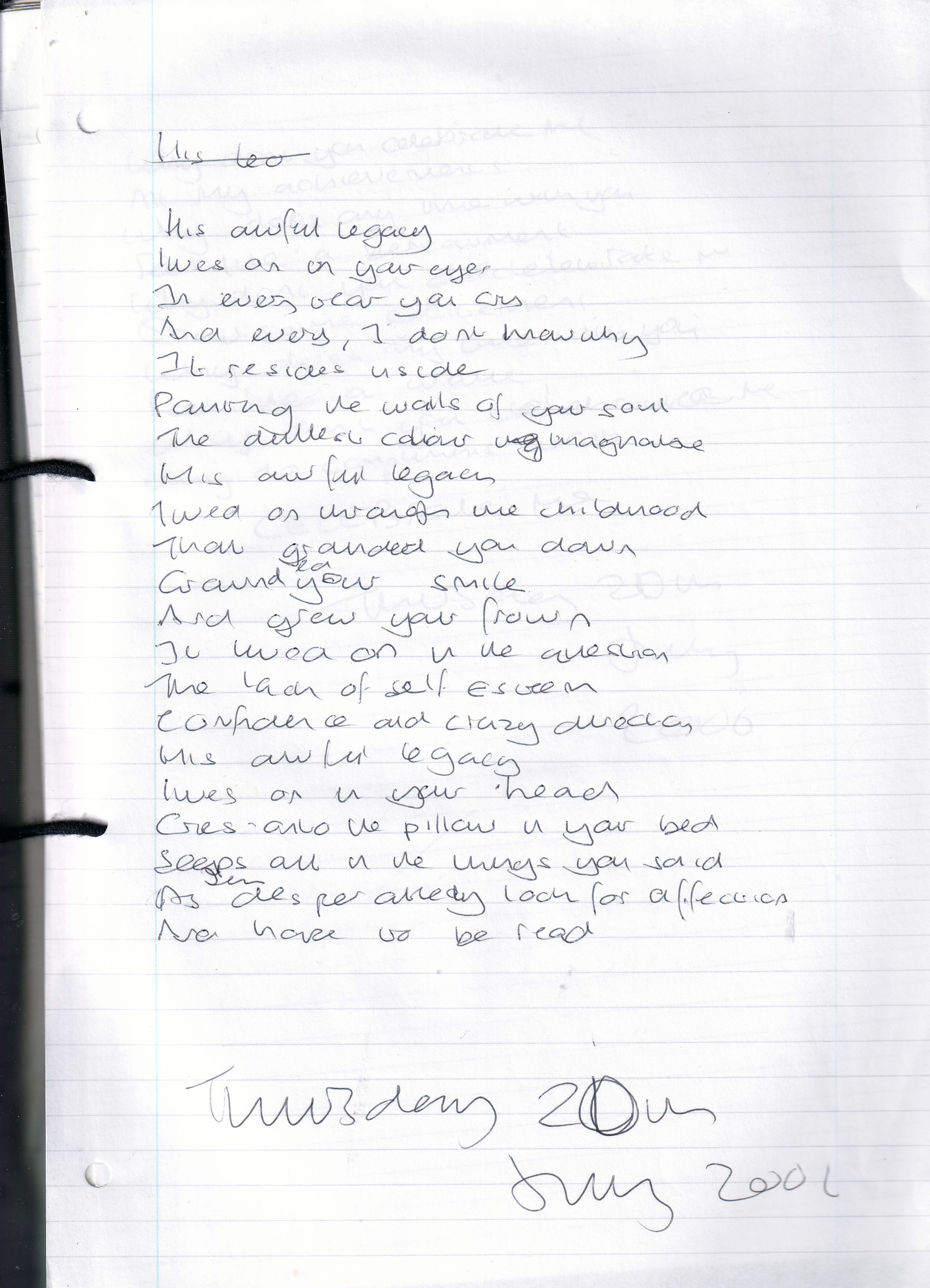 Legacy (Originally Untitled) – Written Thursday 20th July 2006 (Aged 31)
