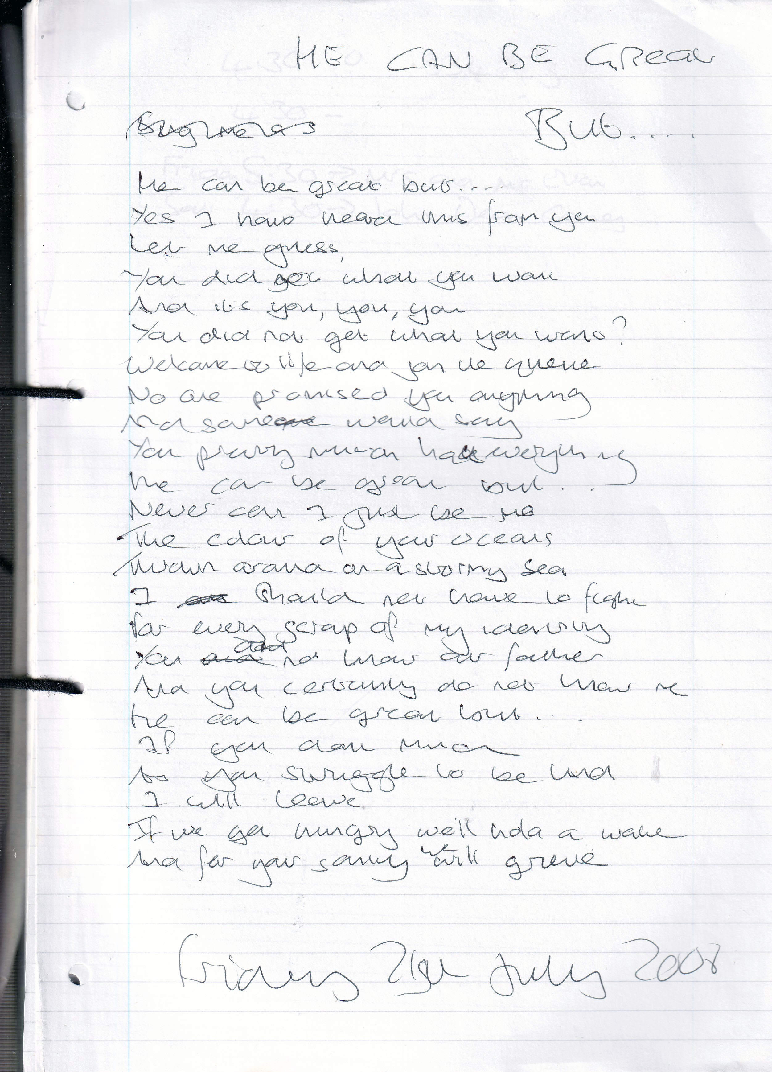 He Can Be Great, But… – Written Friday 21st July 2006 (Aged 31)