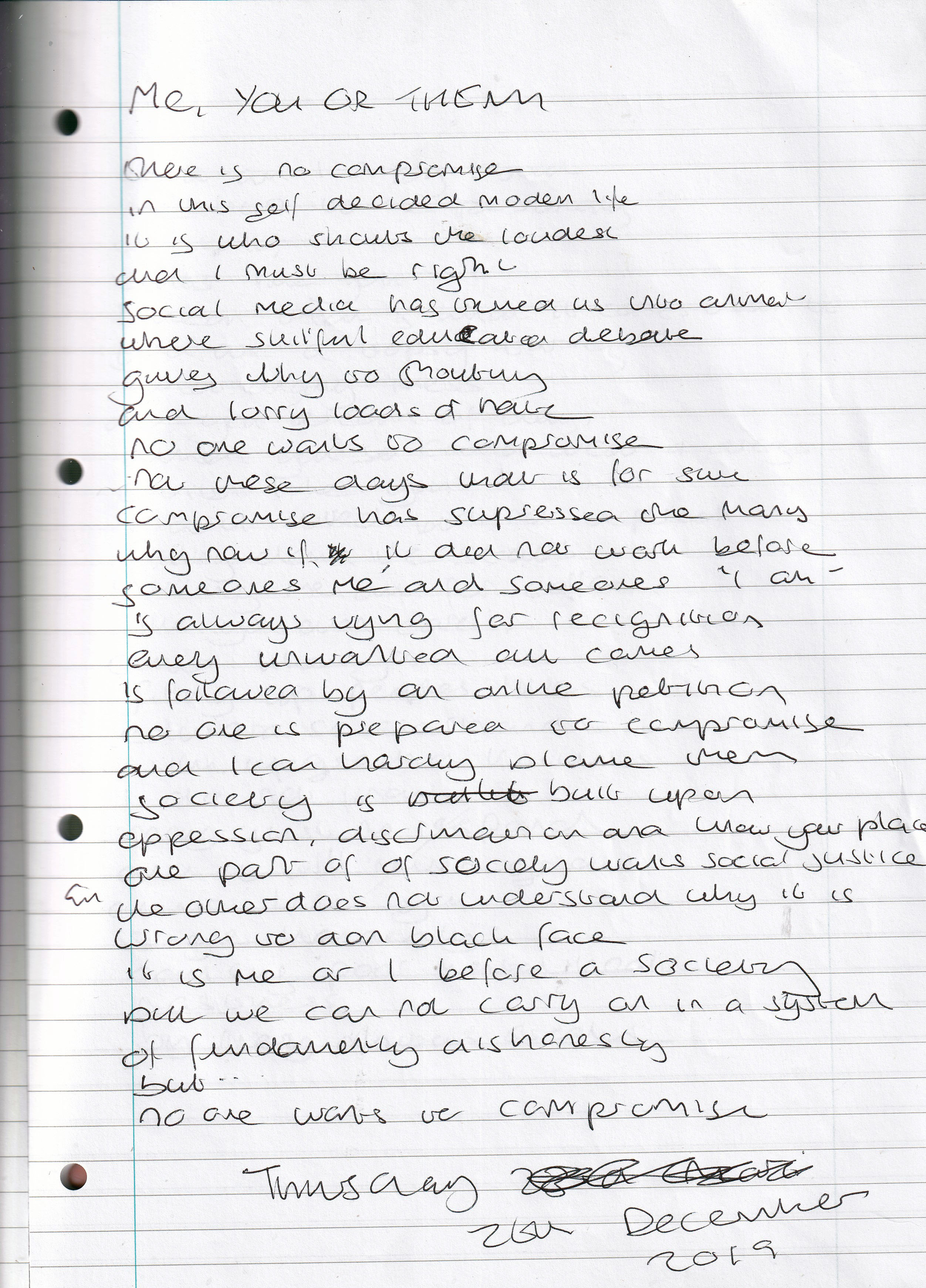 Me, You or Them – Written Thursday 26th December 2019 (Aged 44)