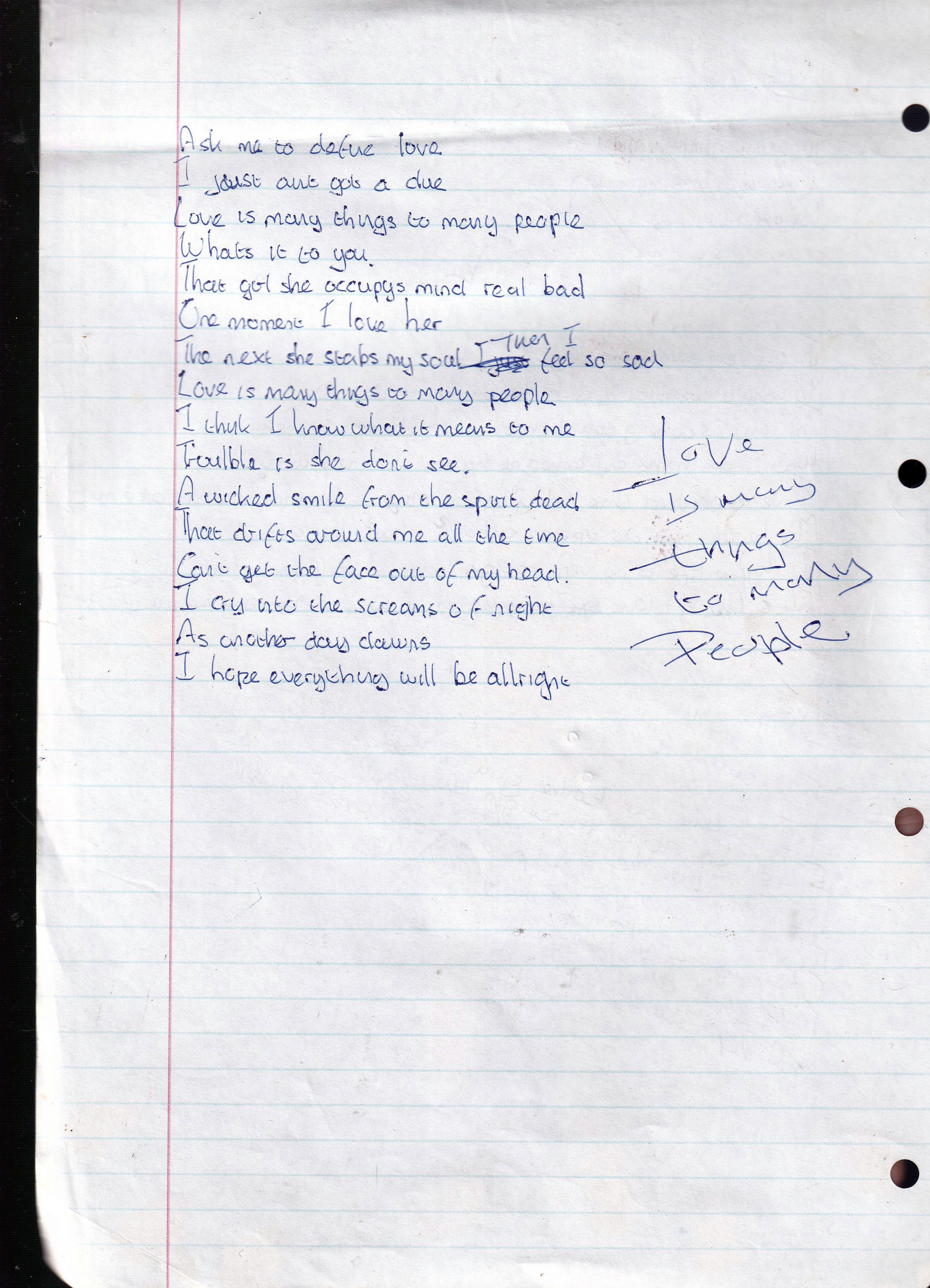 Love is Many Things to Many People – Written January 1993 (Aged 17)