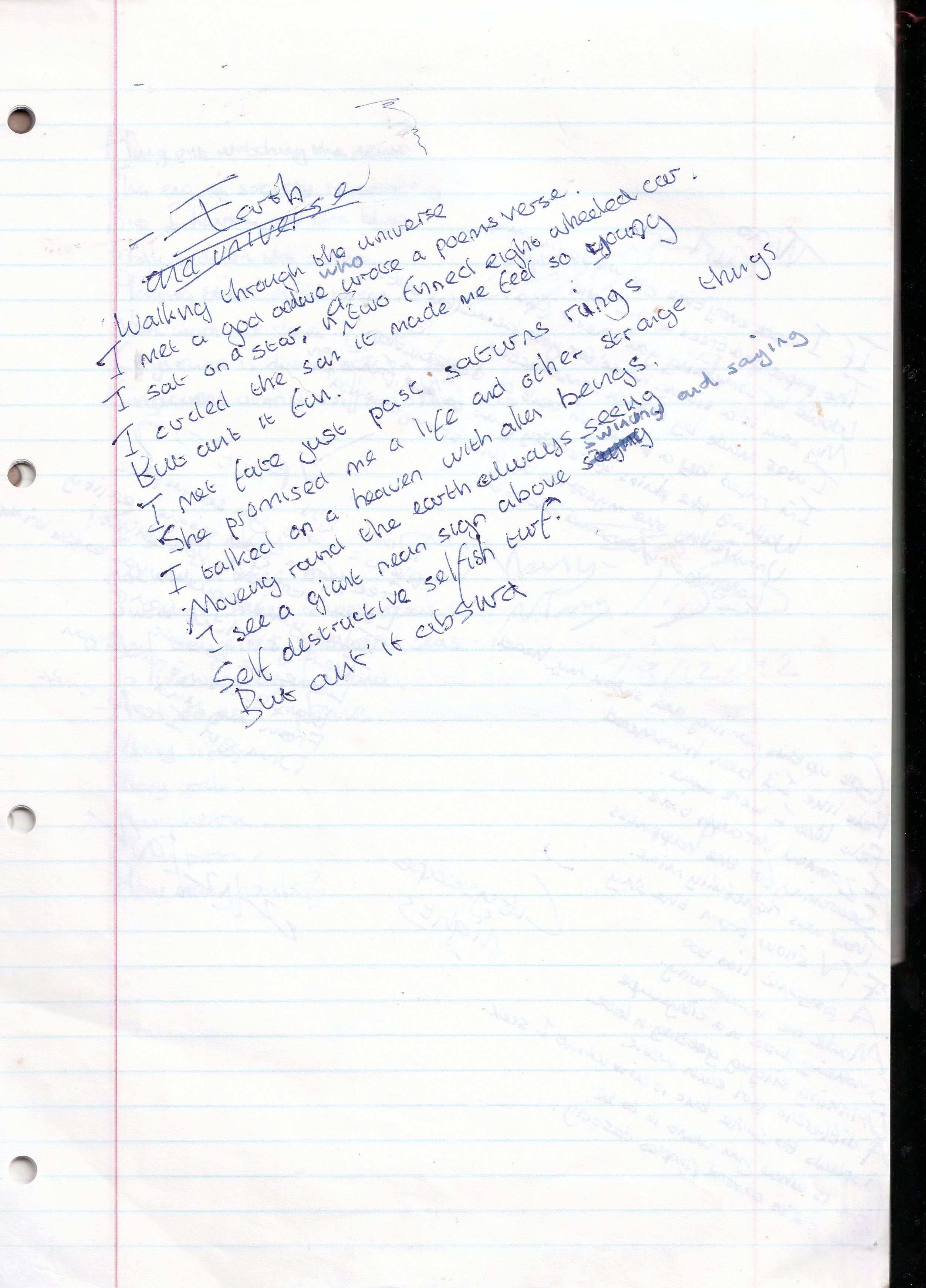 Earth and Universe – Written December 1992 (Aged 17)