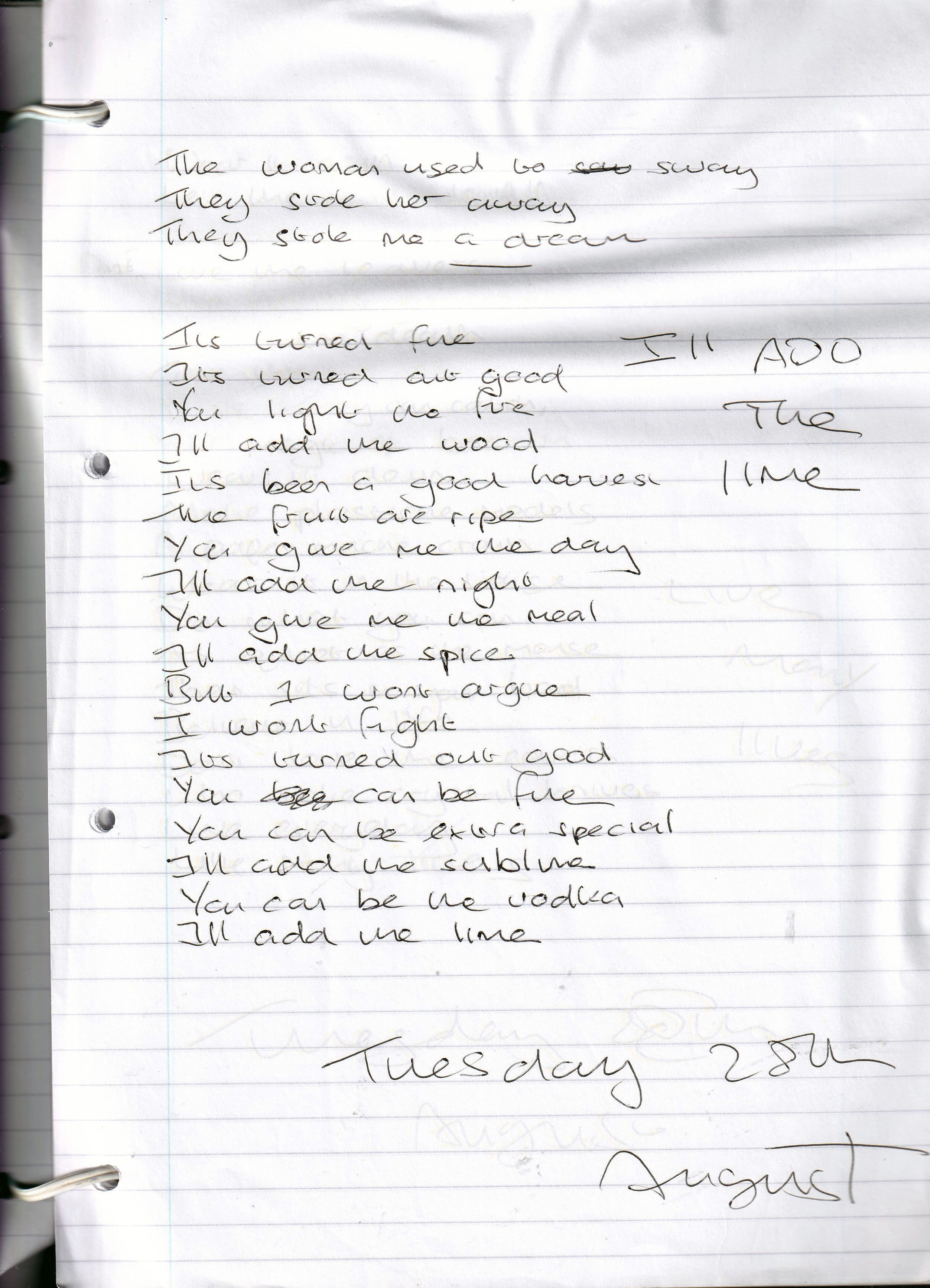 I Will Add the Lime – Written Tuesday 28th August 2001 (Aged 26)