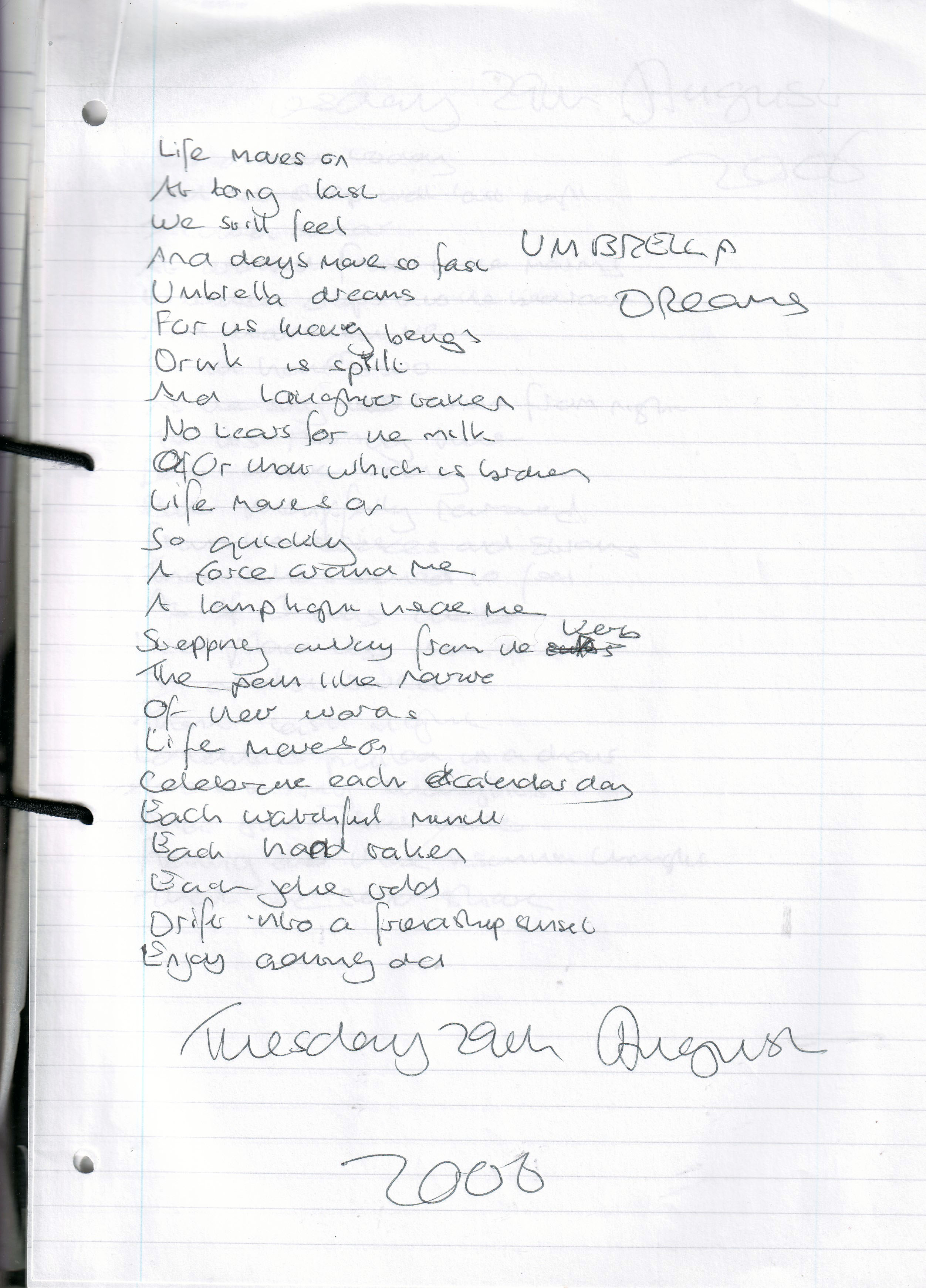 Umbrella Dreams – Written Tuesday 29th August 2006 (Aged 31)