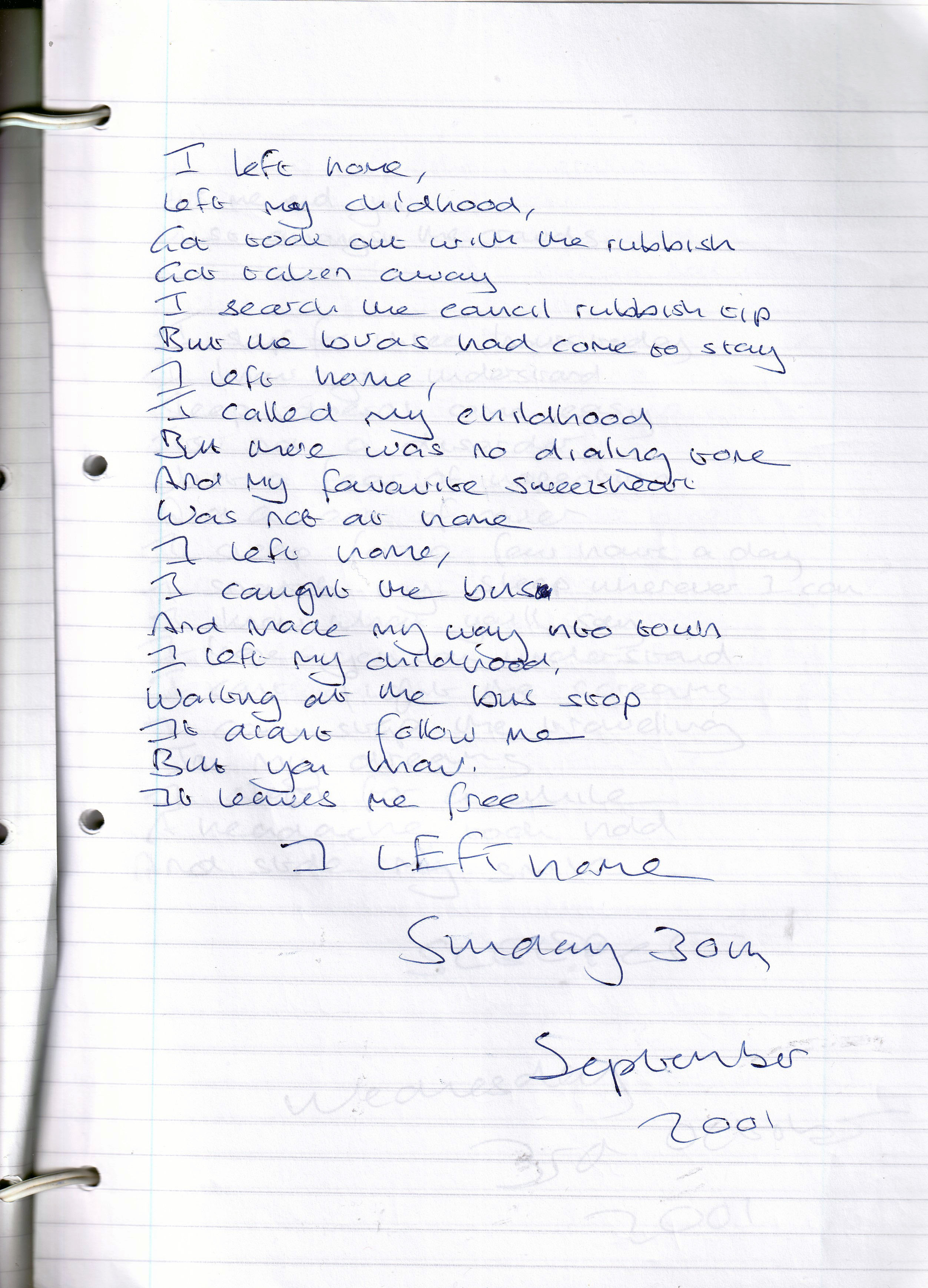 I Left Home – Written Sunday 30th September 2001 (Aged 26)