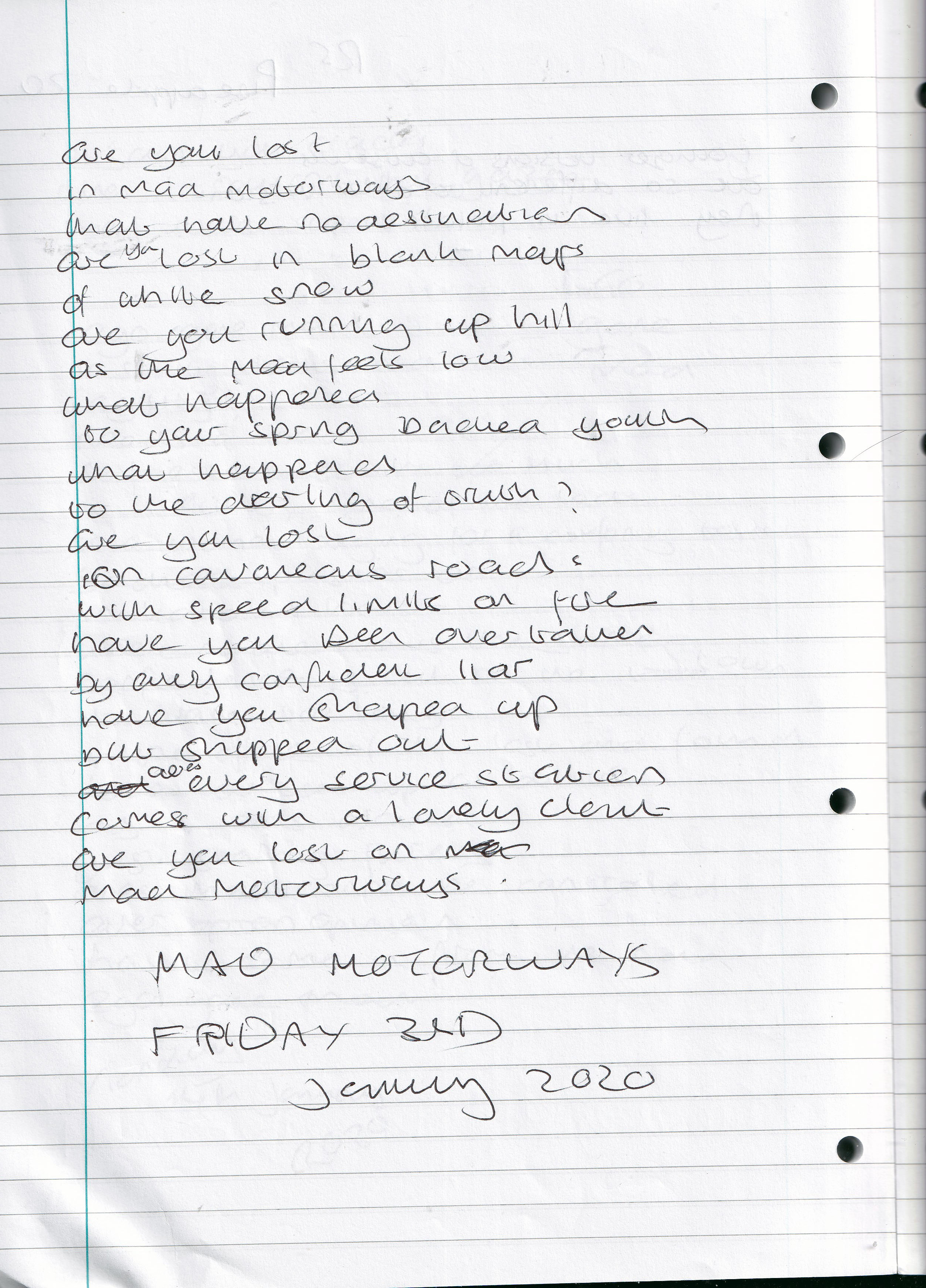 Mad Motorways – Written Friday 3rd January 2020 (Aged 44)