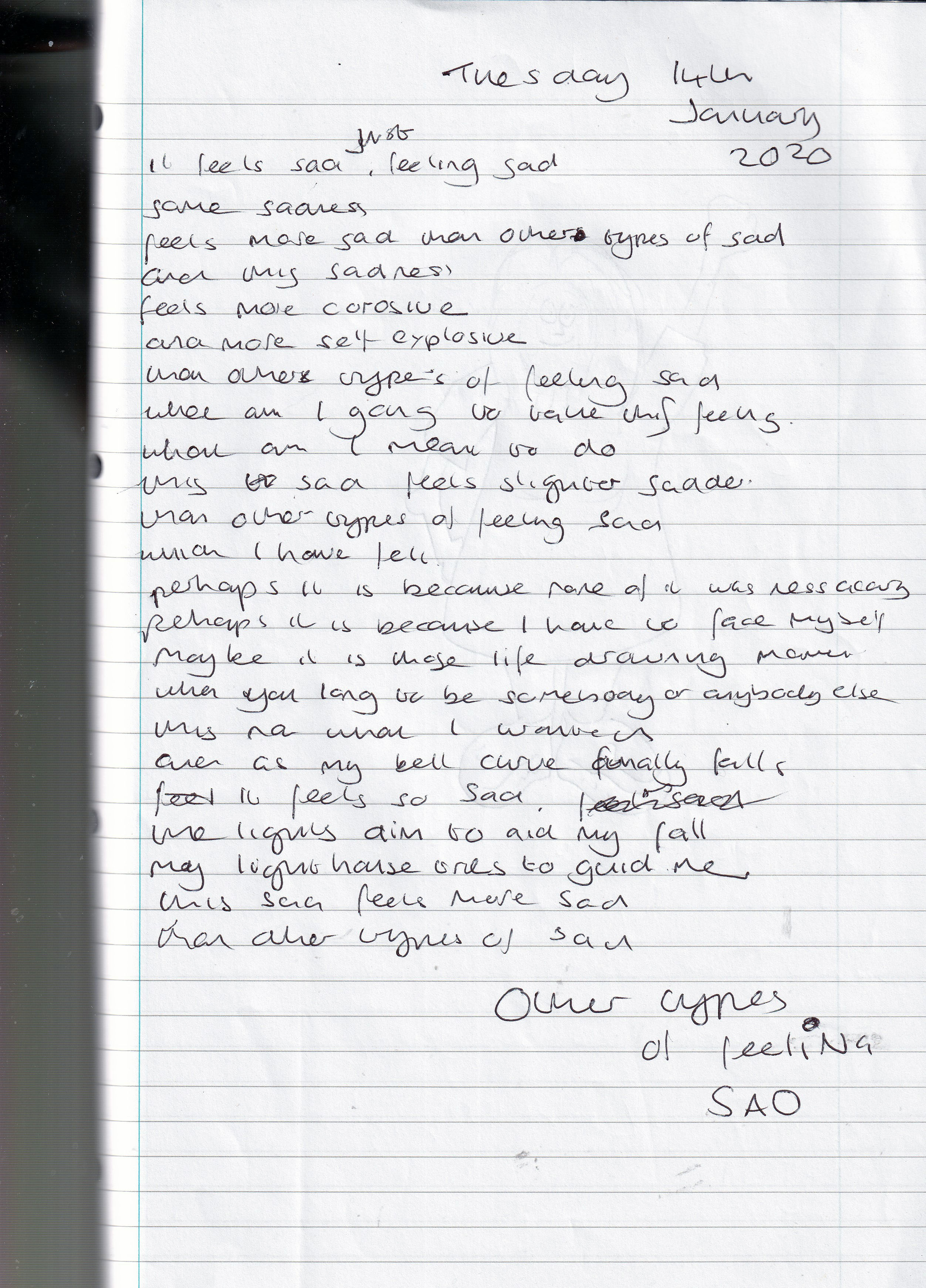 Other Types of Feeling Sad – Written Tuesday 14th January 2020