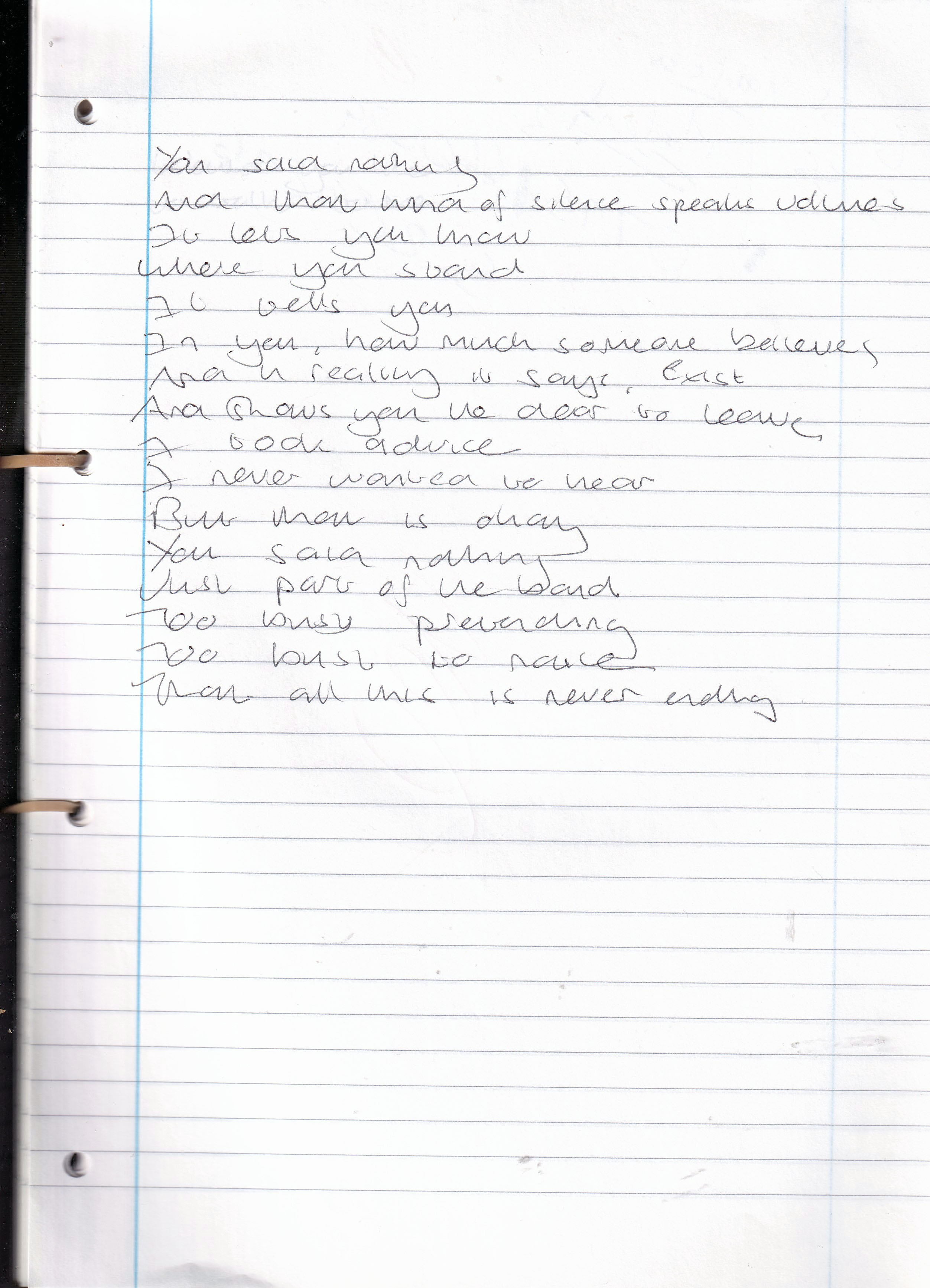Silence Speaks Volumes (Originally Untitled and Unfinished) – Written July 2009 (Aged 34)