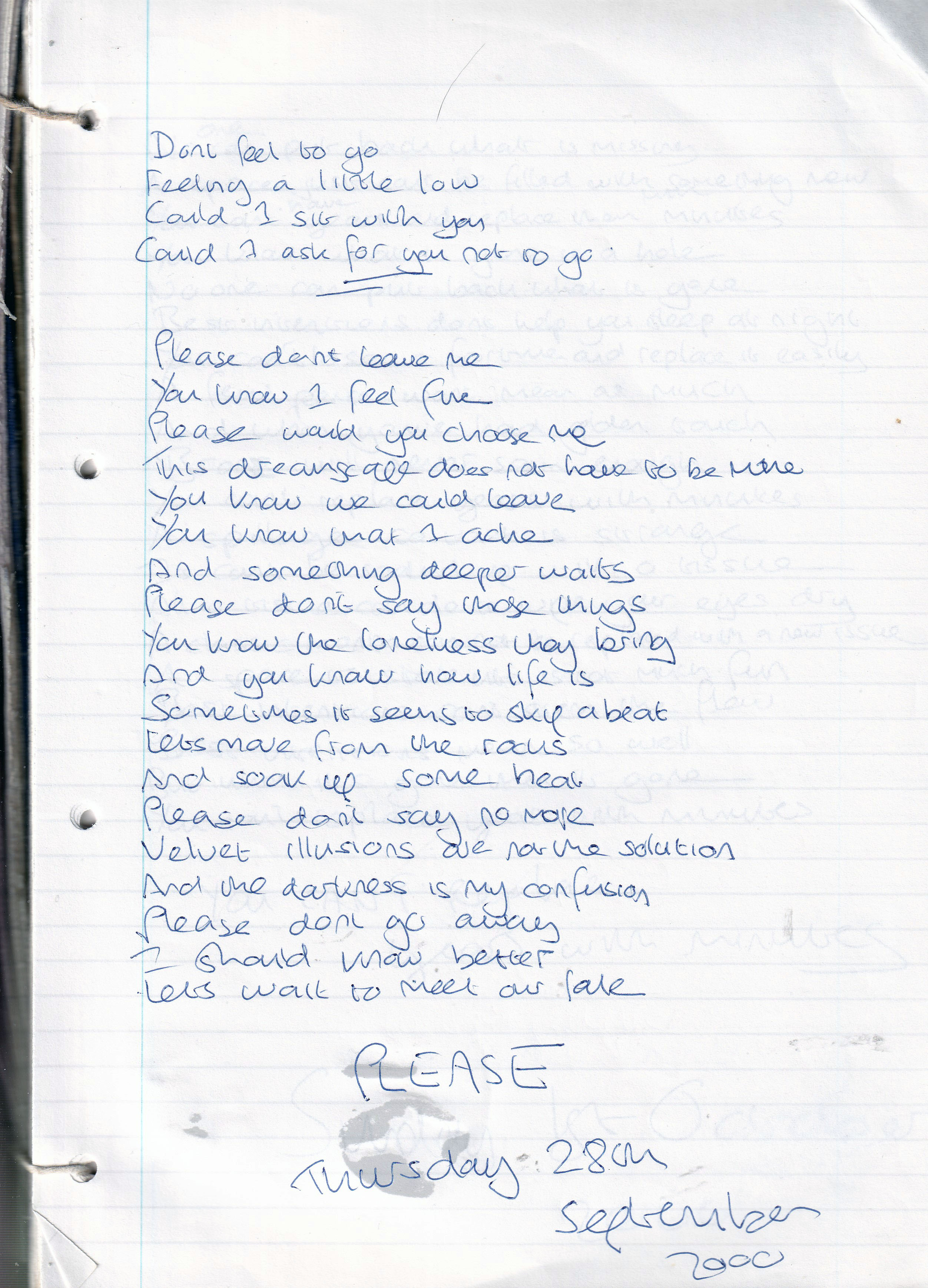 Please – Written Thursday 28th September 2000 (Aged 25)