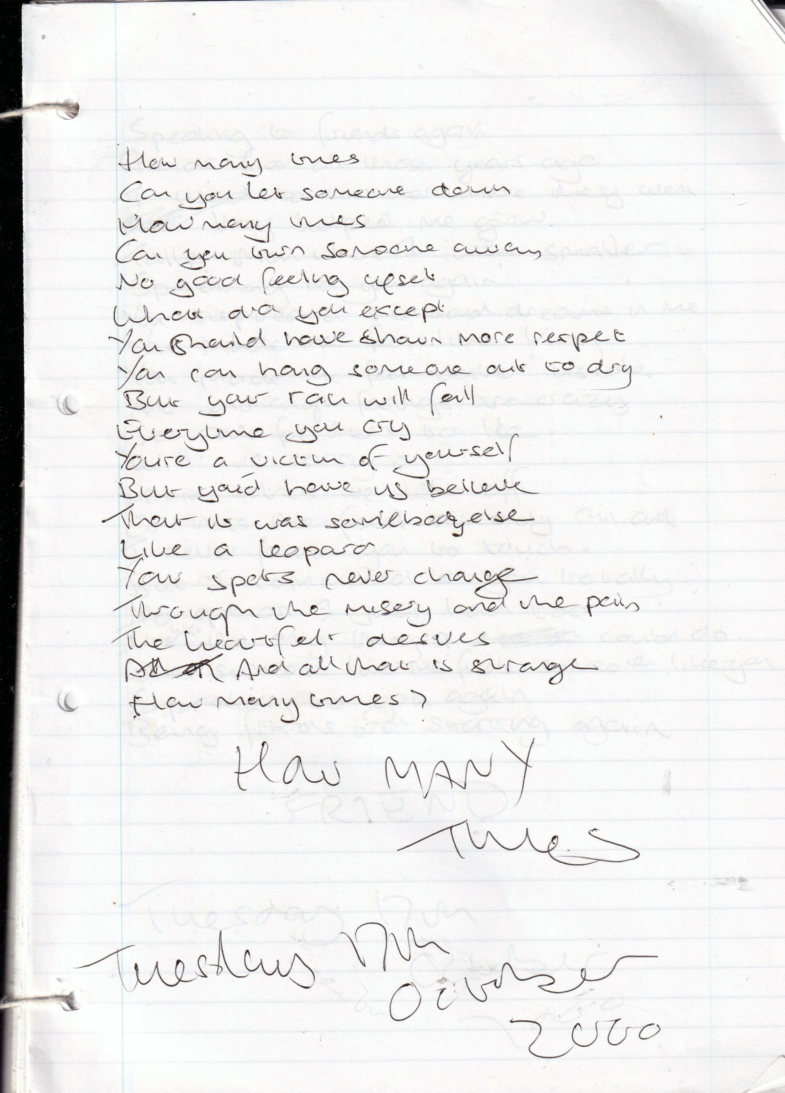 How Many Times – Written Tuesday 17th October 2000 (aged 25)
