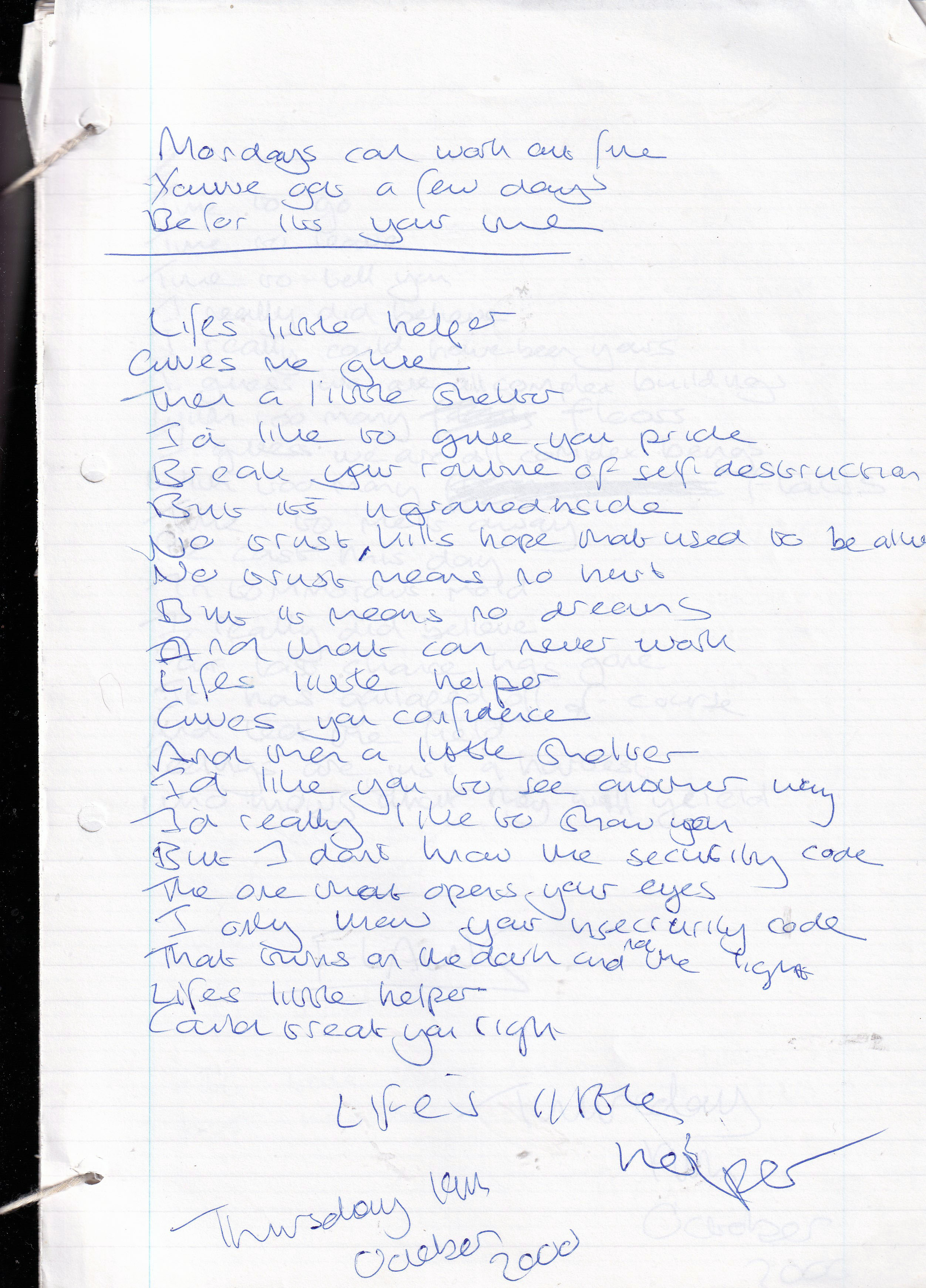 Life’s Little Helper – Written Thursday 19th October 2000 (Aged 25)