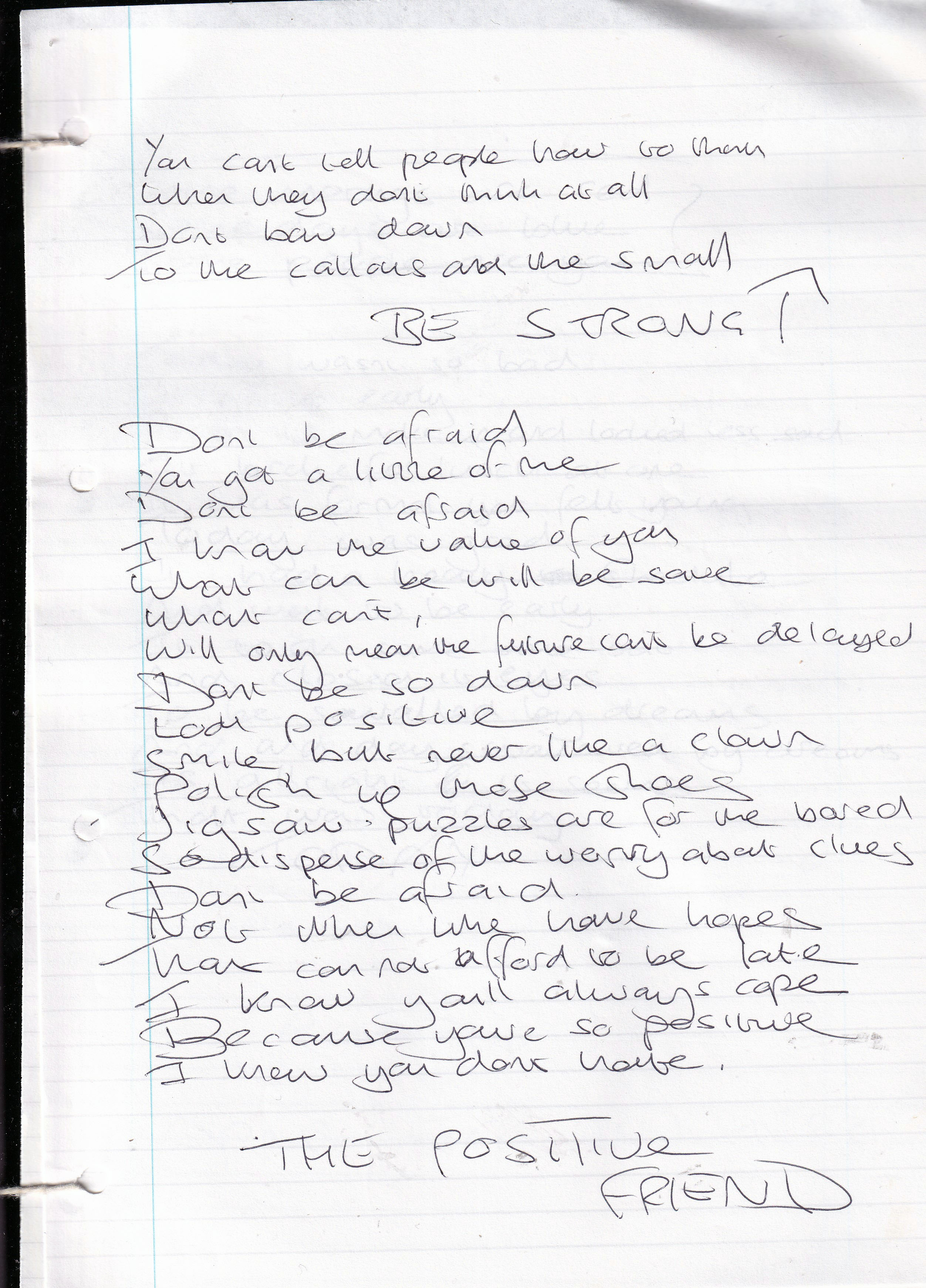 Be Strong – Written November 2000 (Aged 25)