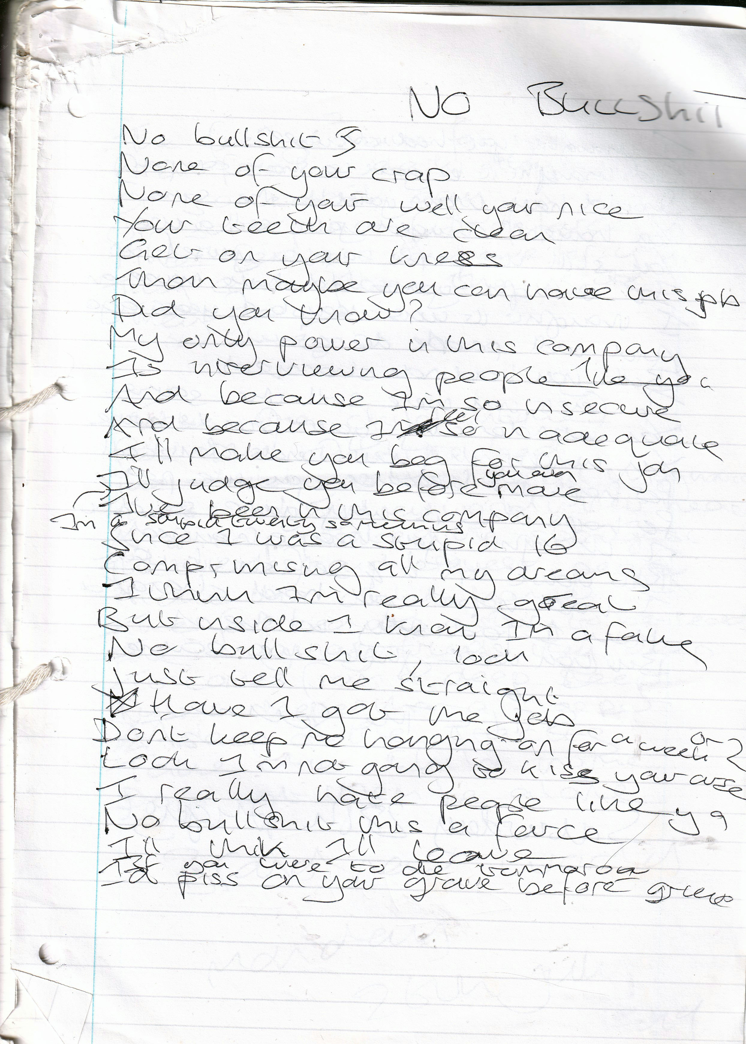 No Bullshit – Written Monday 26th July 1999 (Aged 24)