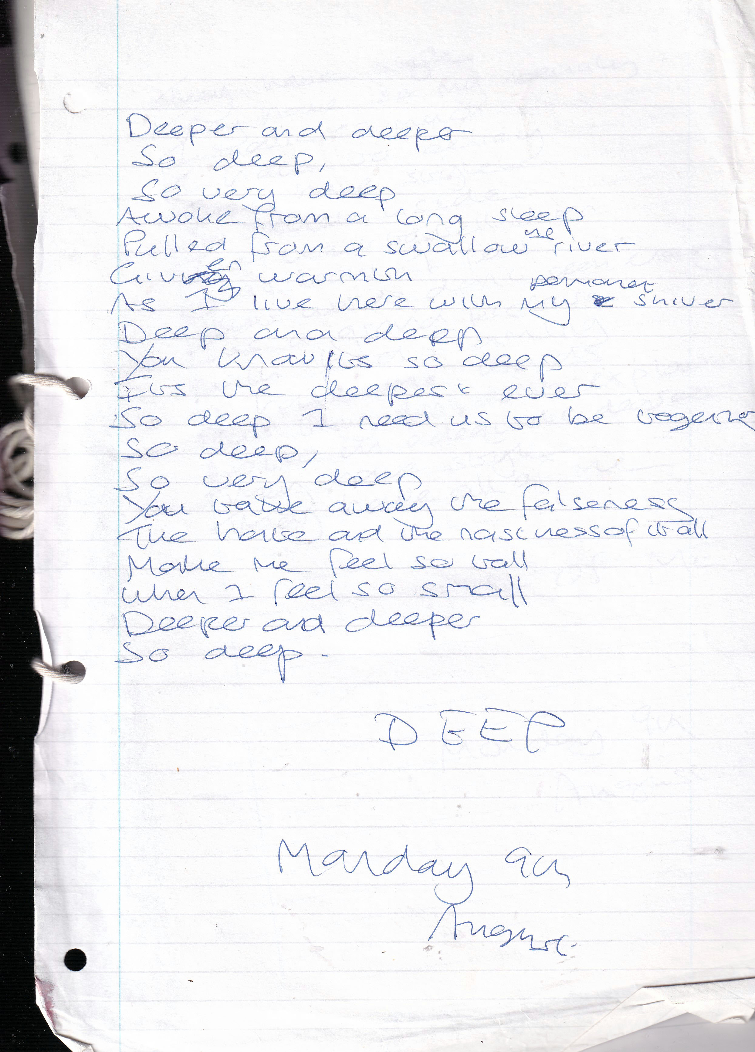 Deep – Written Monday 9th August 1999 (Aged 24)