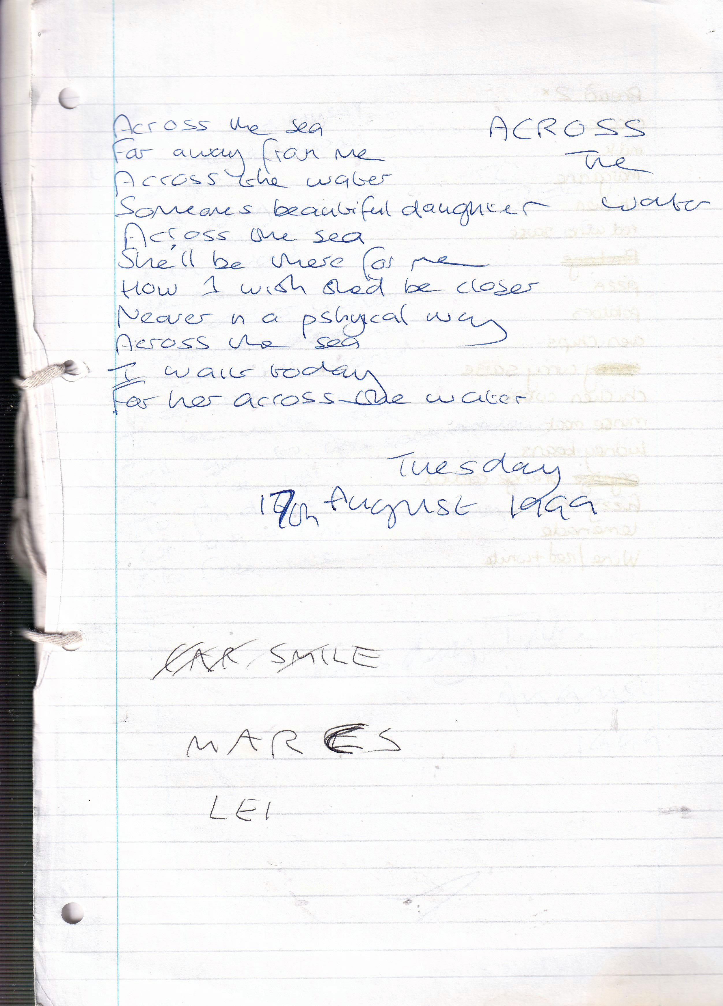 Across the Water – Written Tuesday 17th August 1999 (Aged 24)