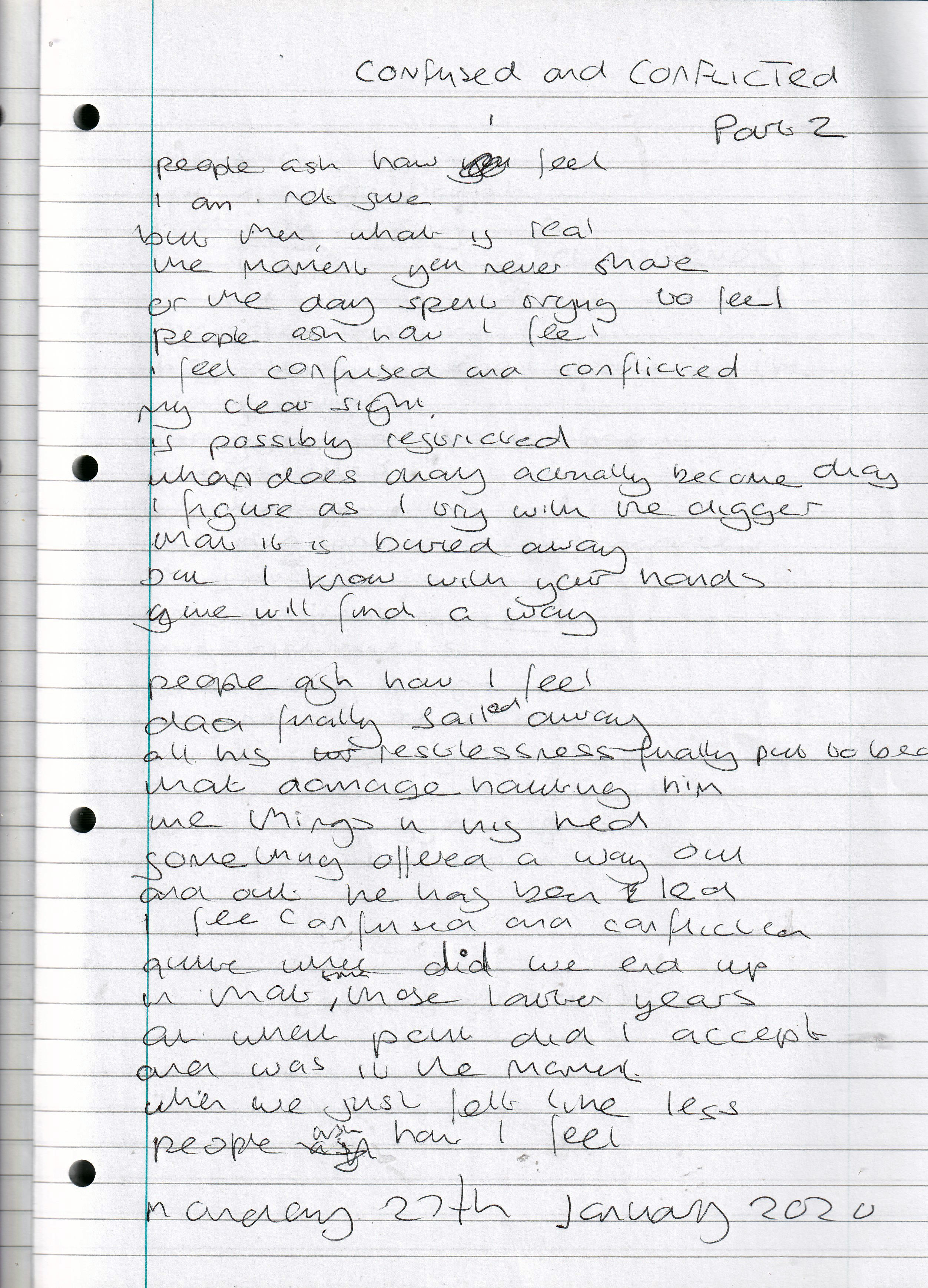 Confused and Conflicted – Written Monday 27th January 2020 (Aged 44)