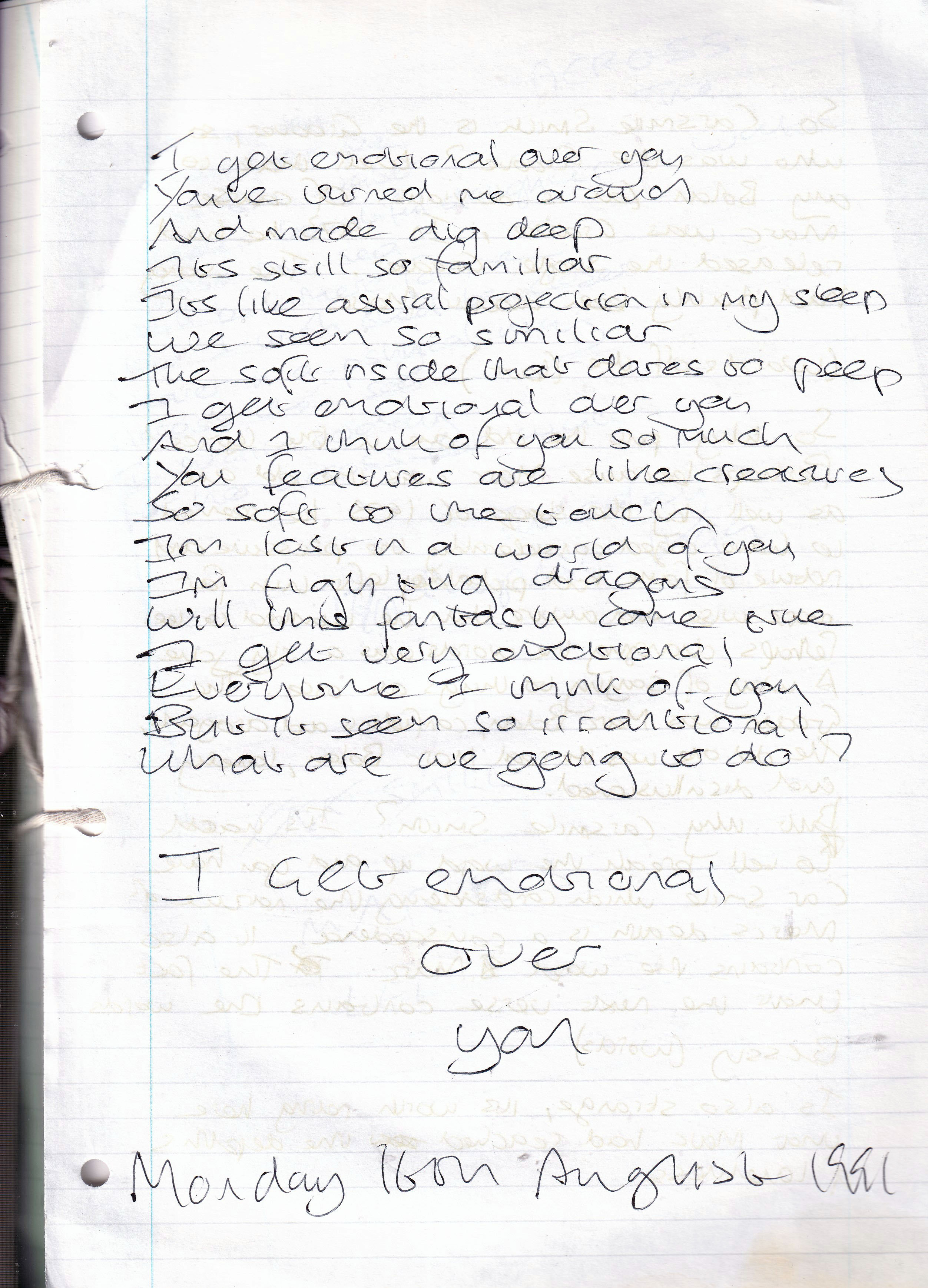 I Get Emotional Over You – Written Monday 16th August 1999 (Aged 24)