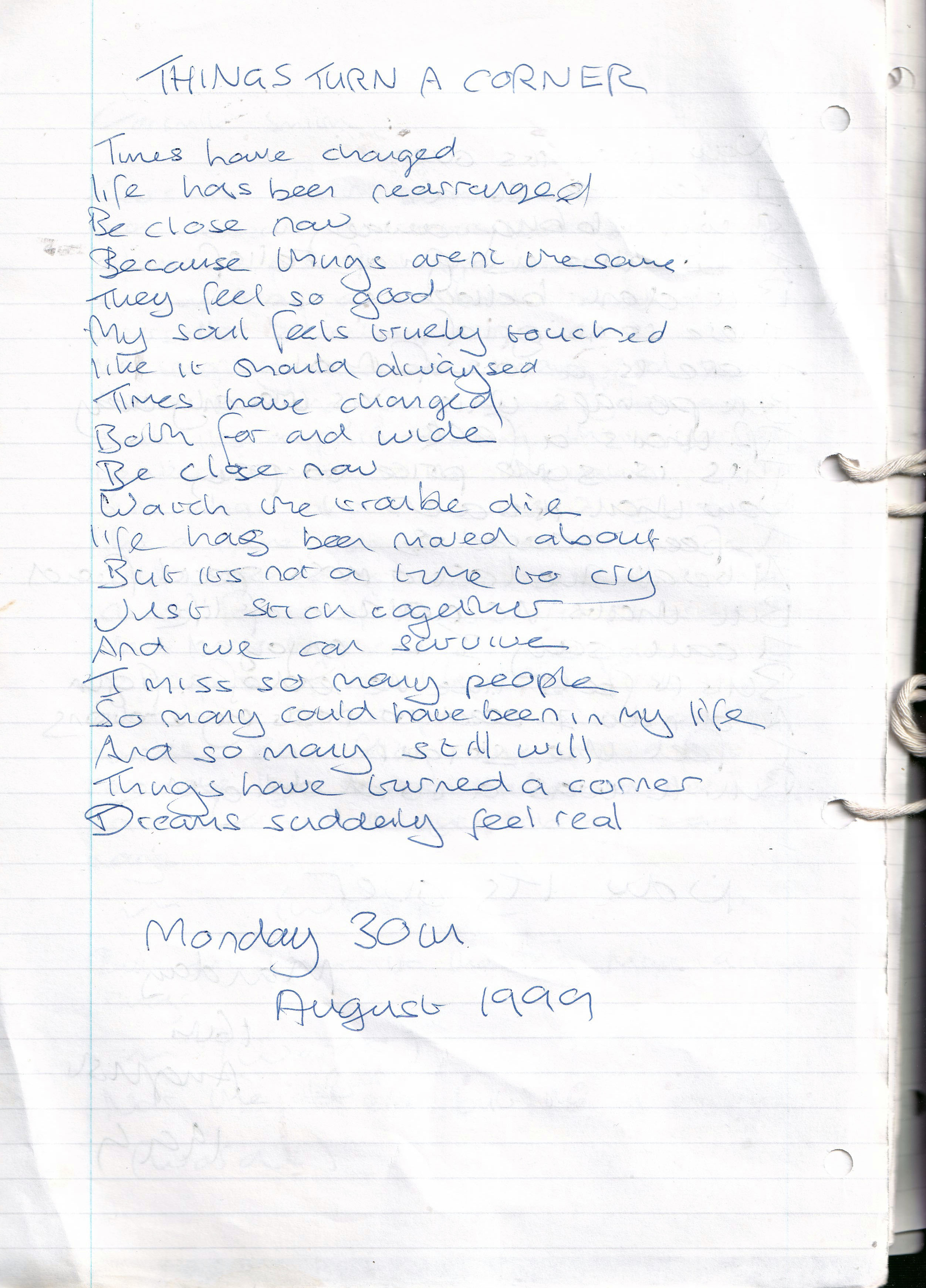 Things Turn a Corner – Written Monday 30th August 1999 (Aged 24)