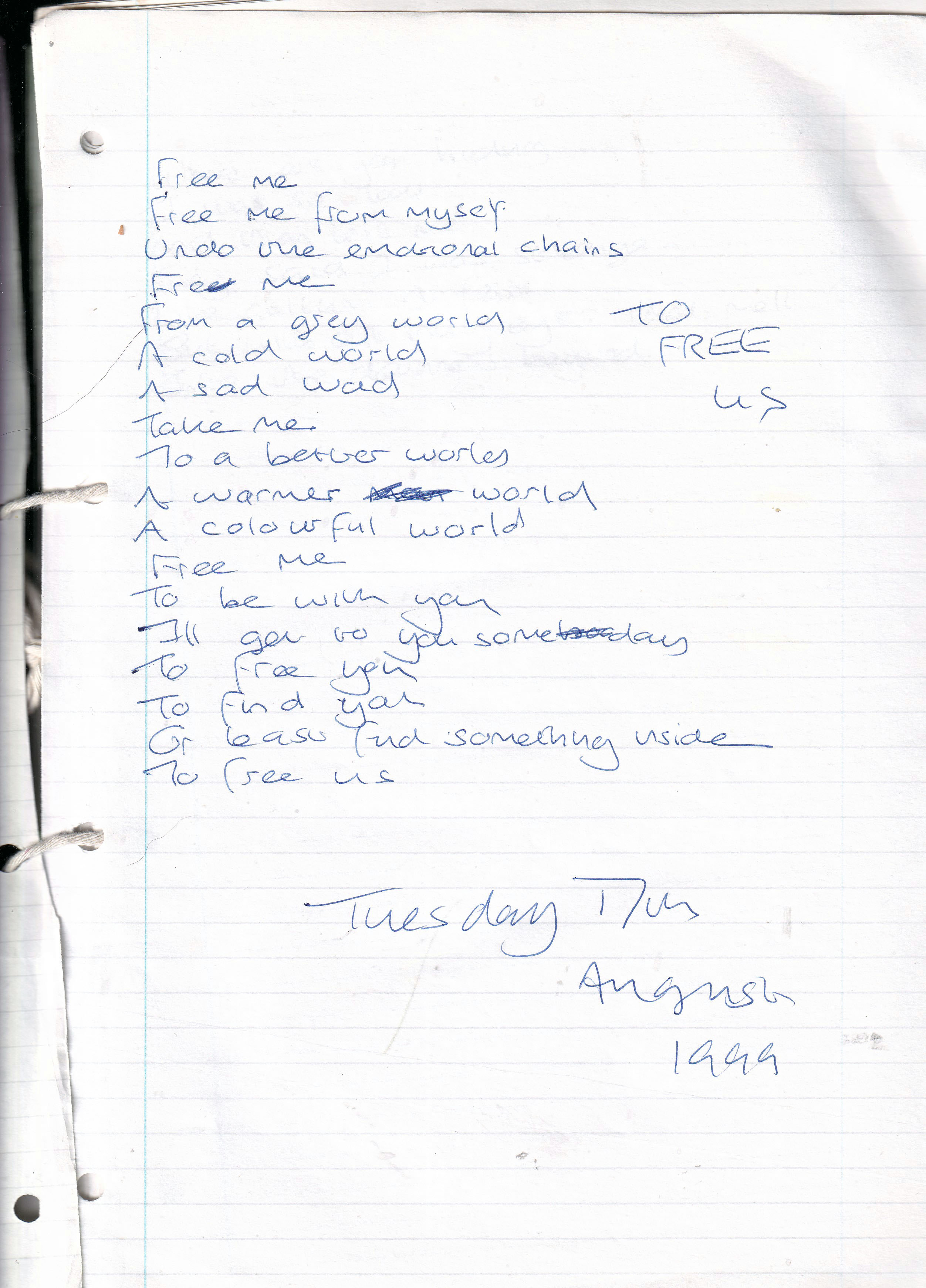 Free – Written Tuesday 17th August 1999 (Aged 24)