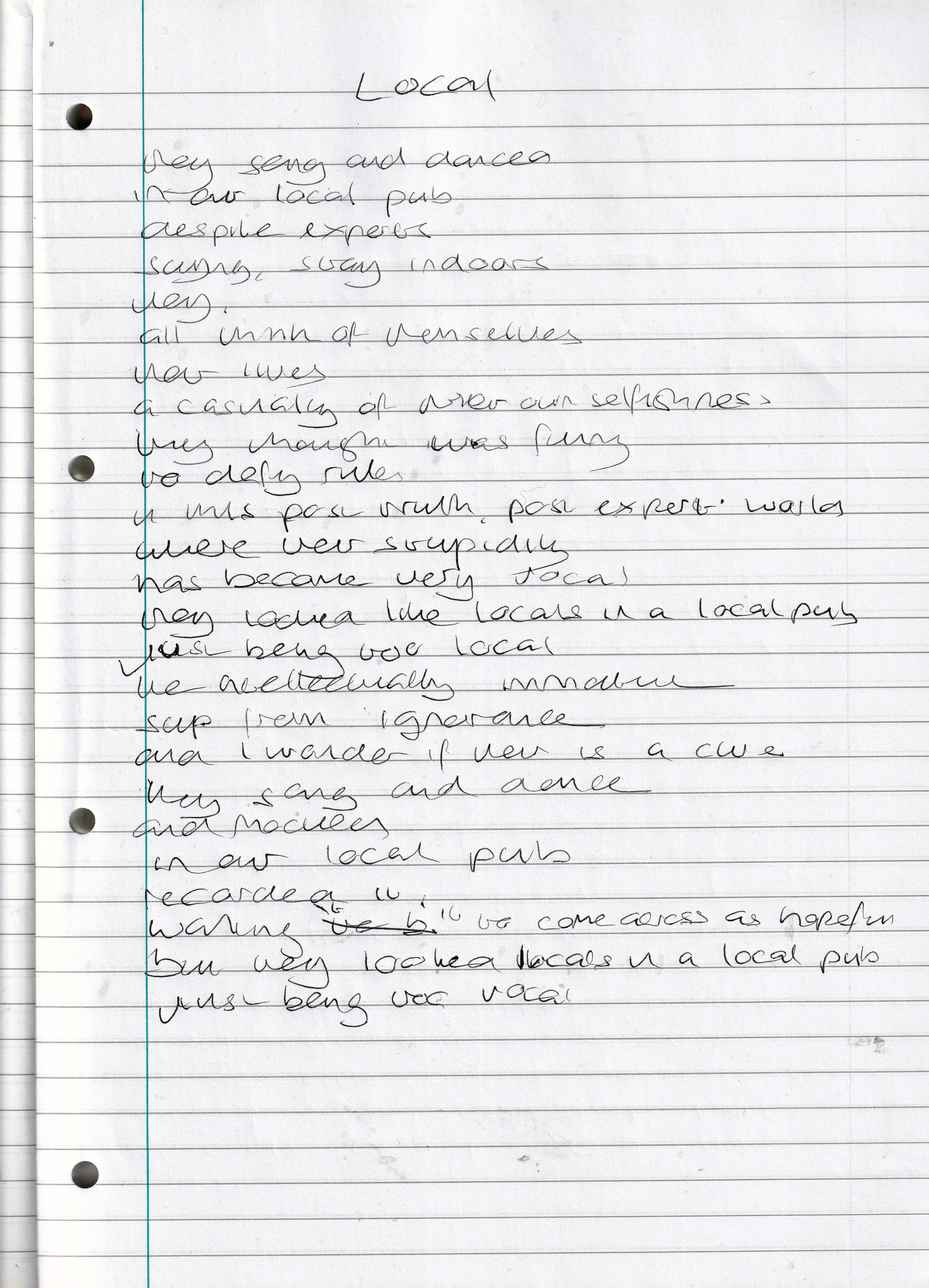Locals – Written Sunday 22nd Monday 2020 (Aged 45)