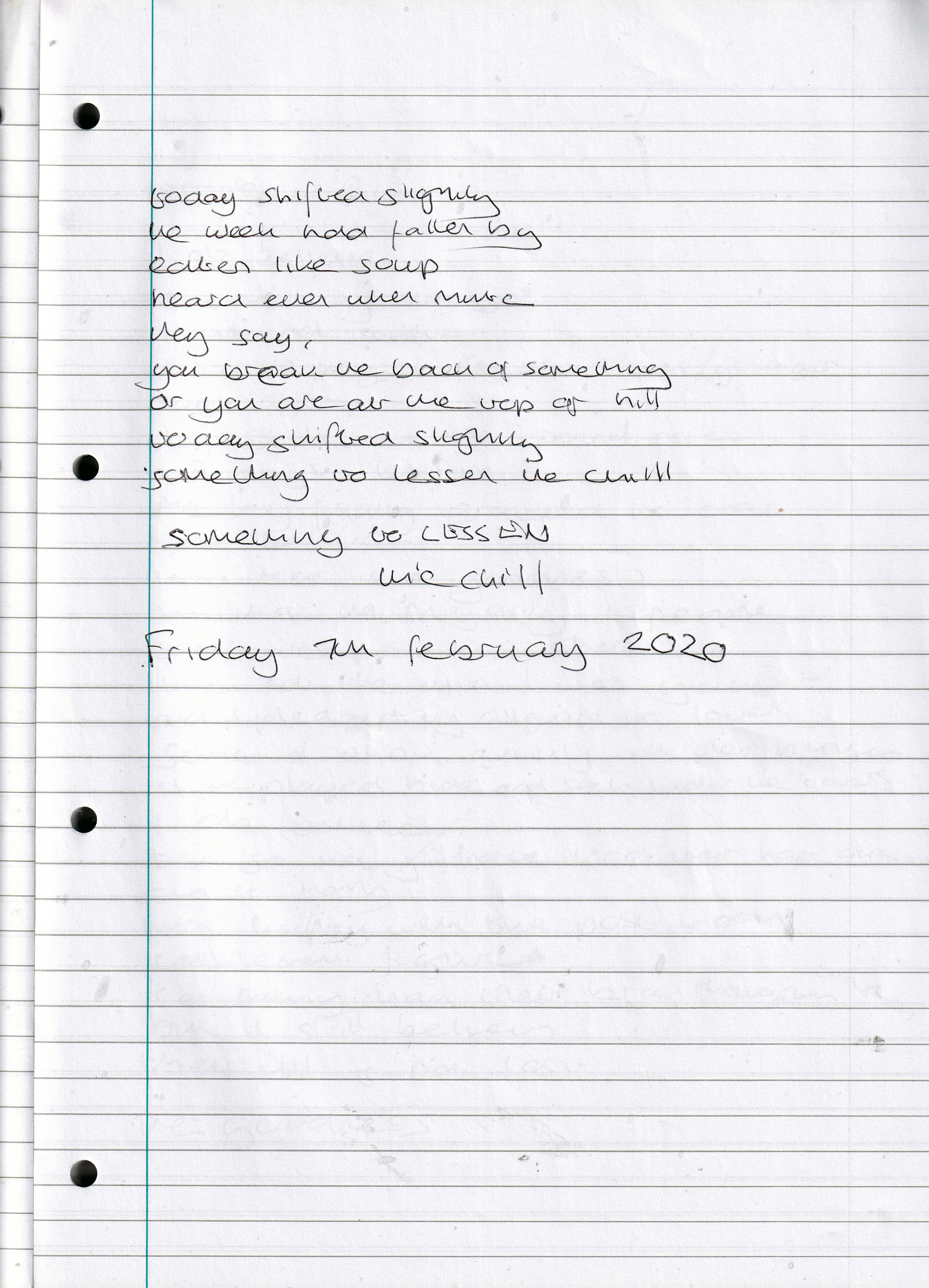 Something to Lessen the Chill – Written Friday 7th February 2020 (Aged 44)