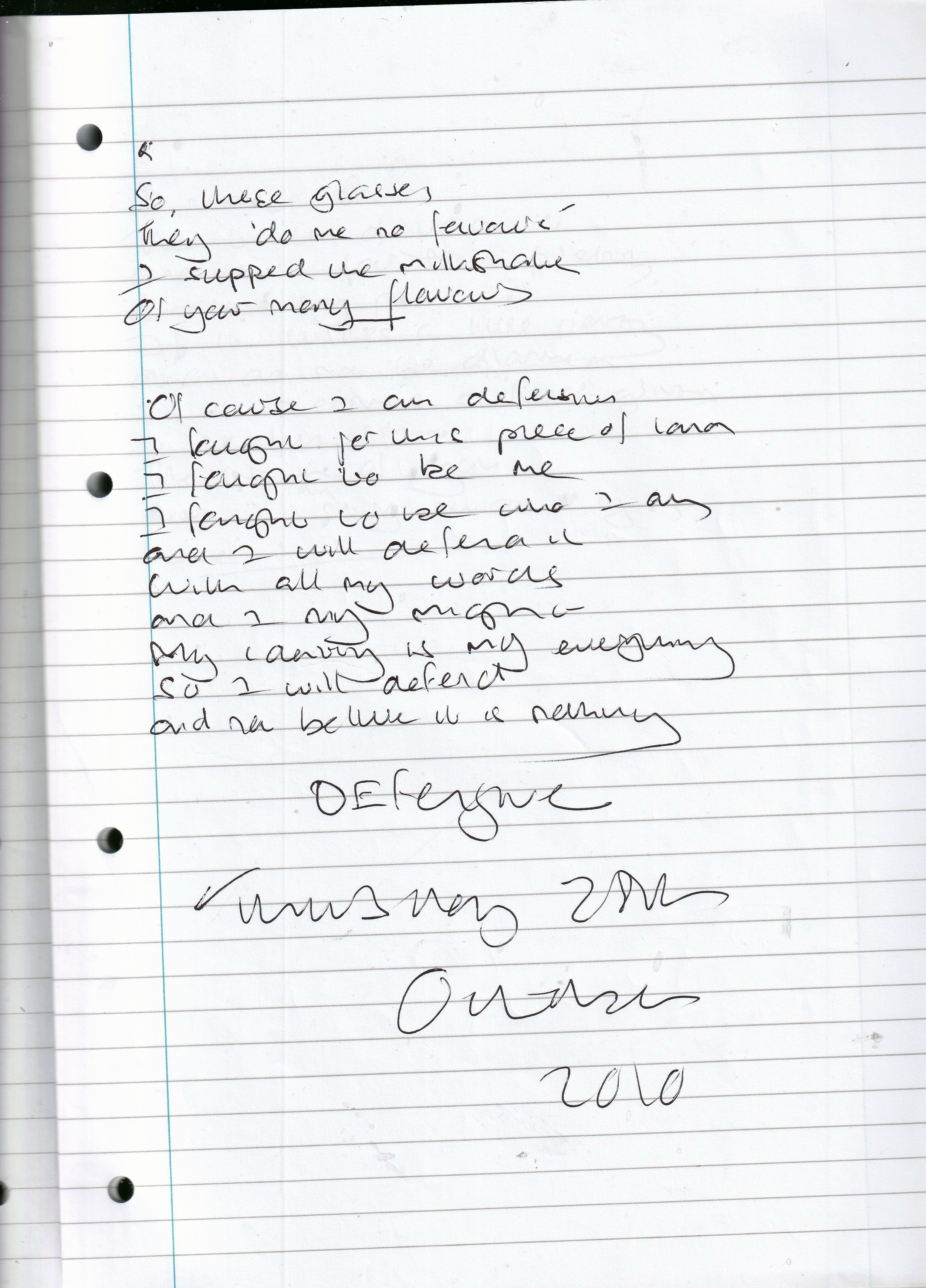 Defensive – Written Thursday 28th October 2010 (Aged 35)