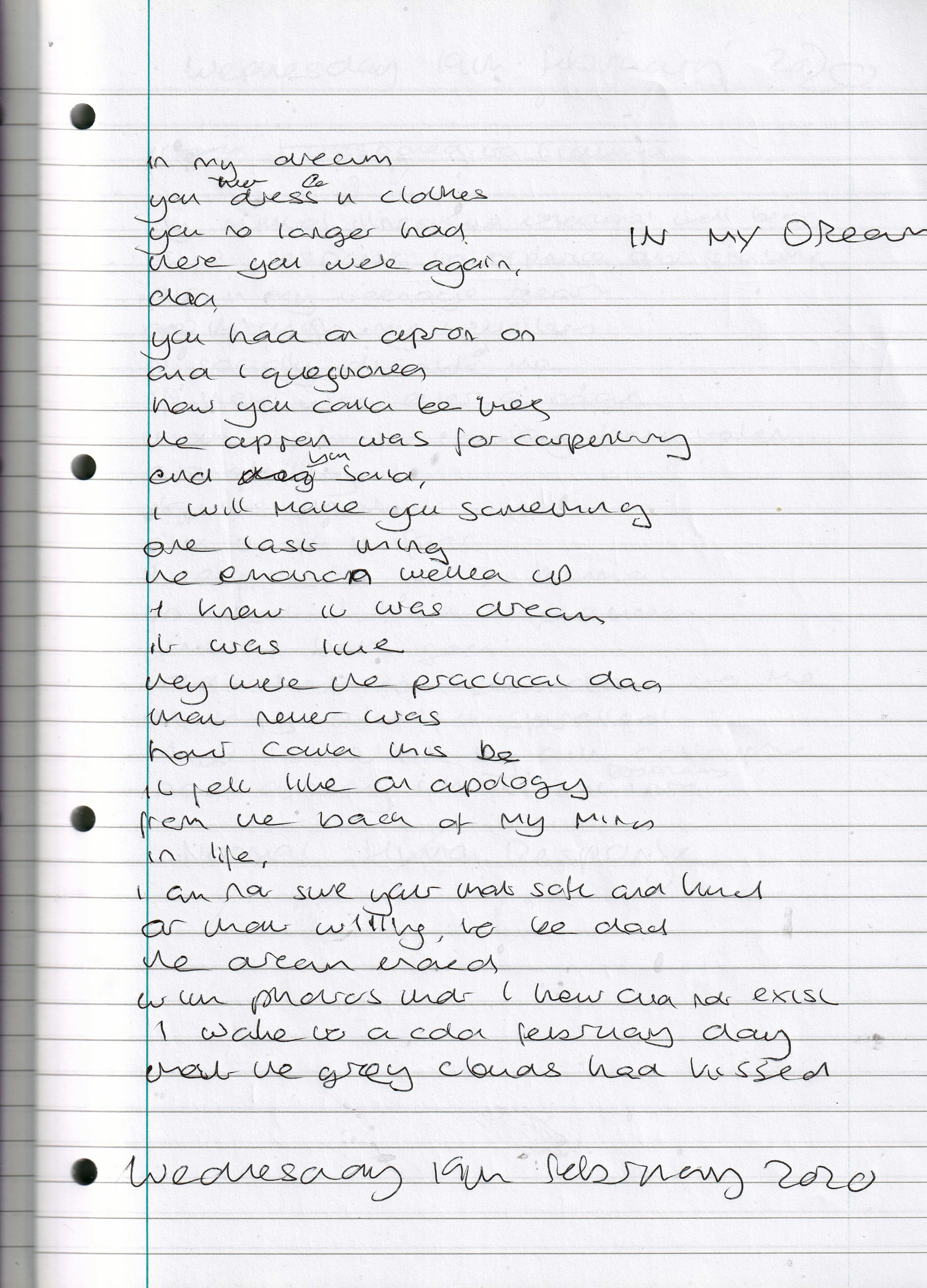 In My Dream He is There – Written Wednesday 19th February 2020 (Aged 44)