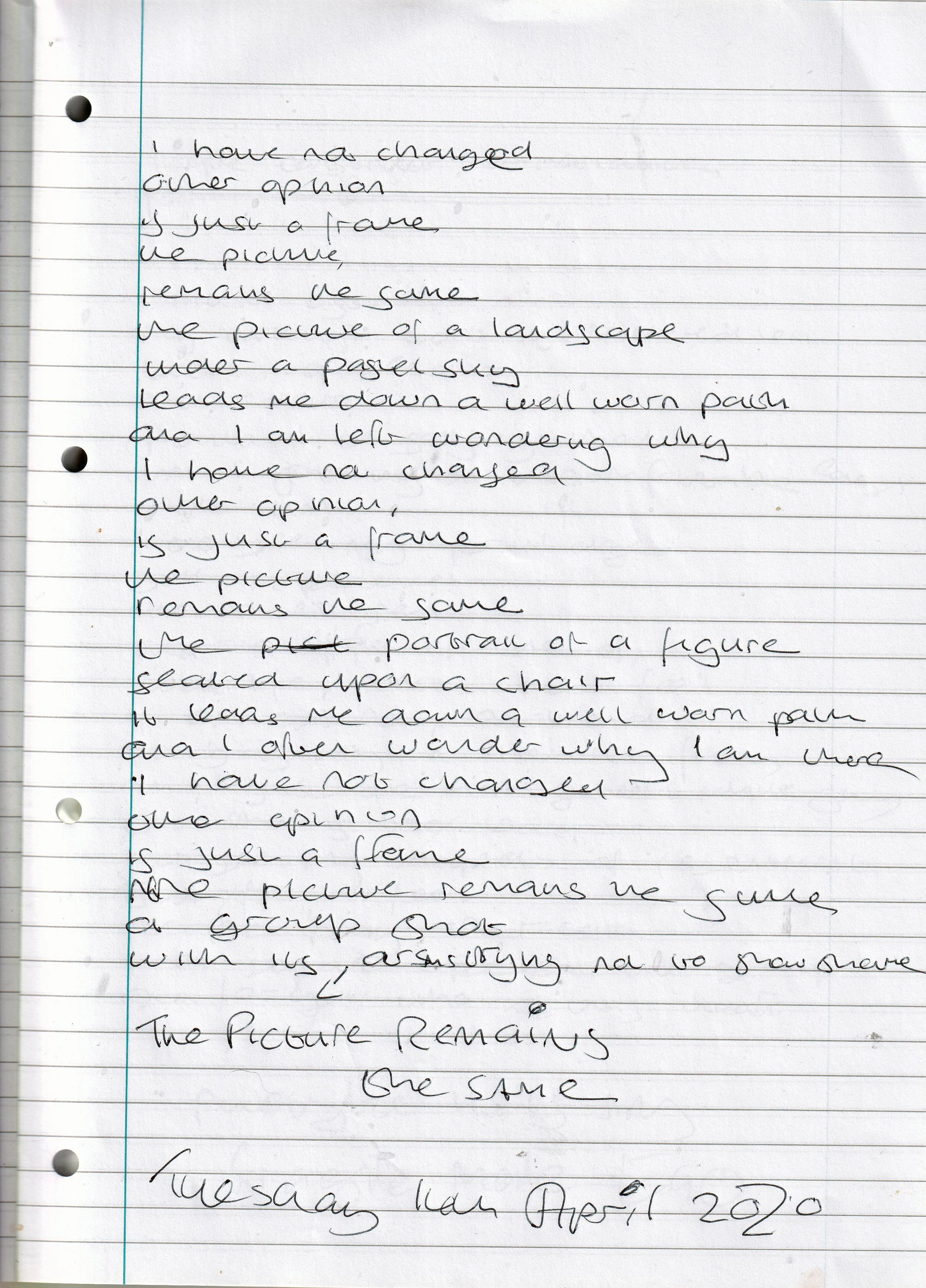 The Picture Remains the Same – Written Tuesday 14th April 2020 (Aged 45)