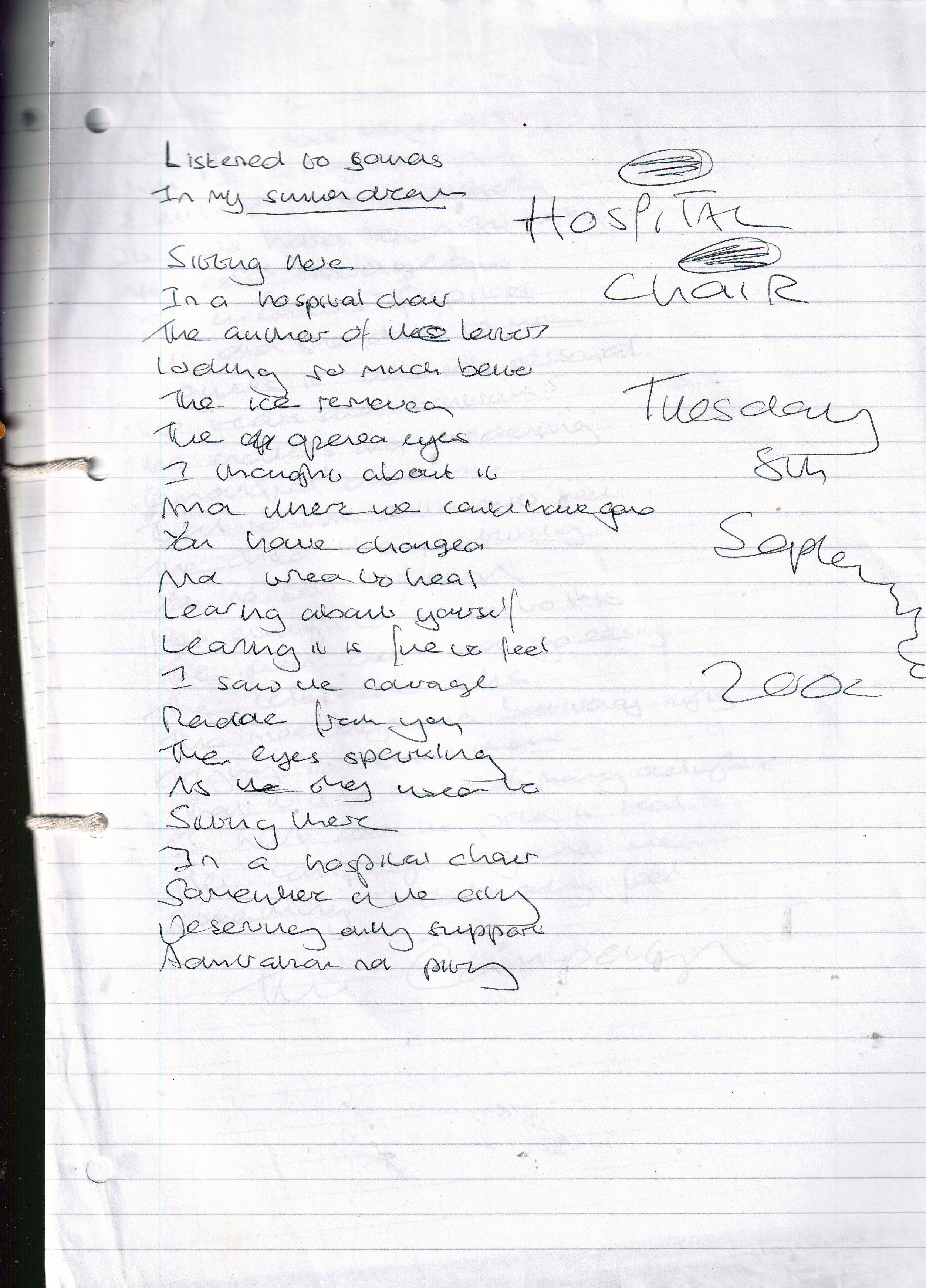 Hospital Chair – Written Tuesday 5th September 2008 (Aged 33)