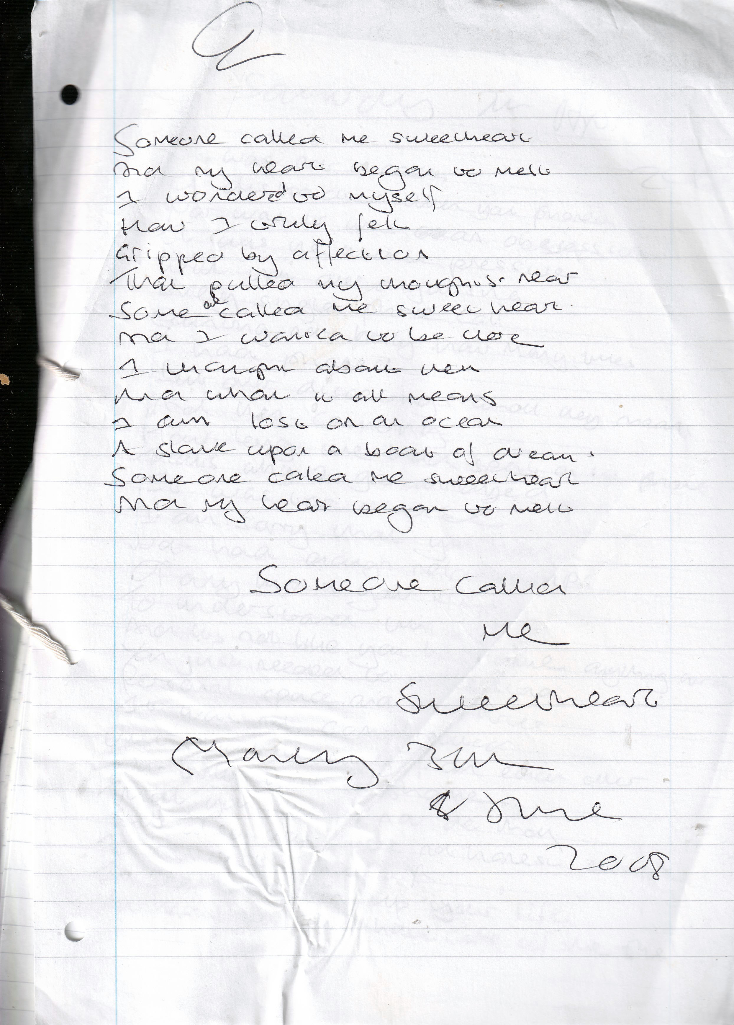 Someone Called Me Sweetheart – Written Monday 30th June 2008 (Aged 33)