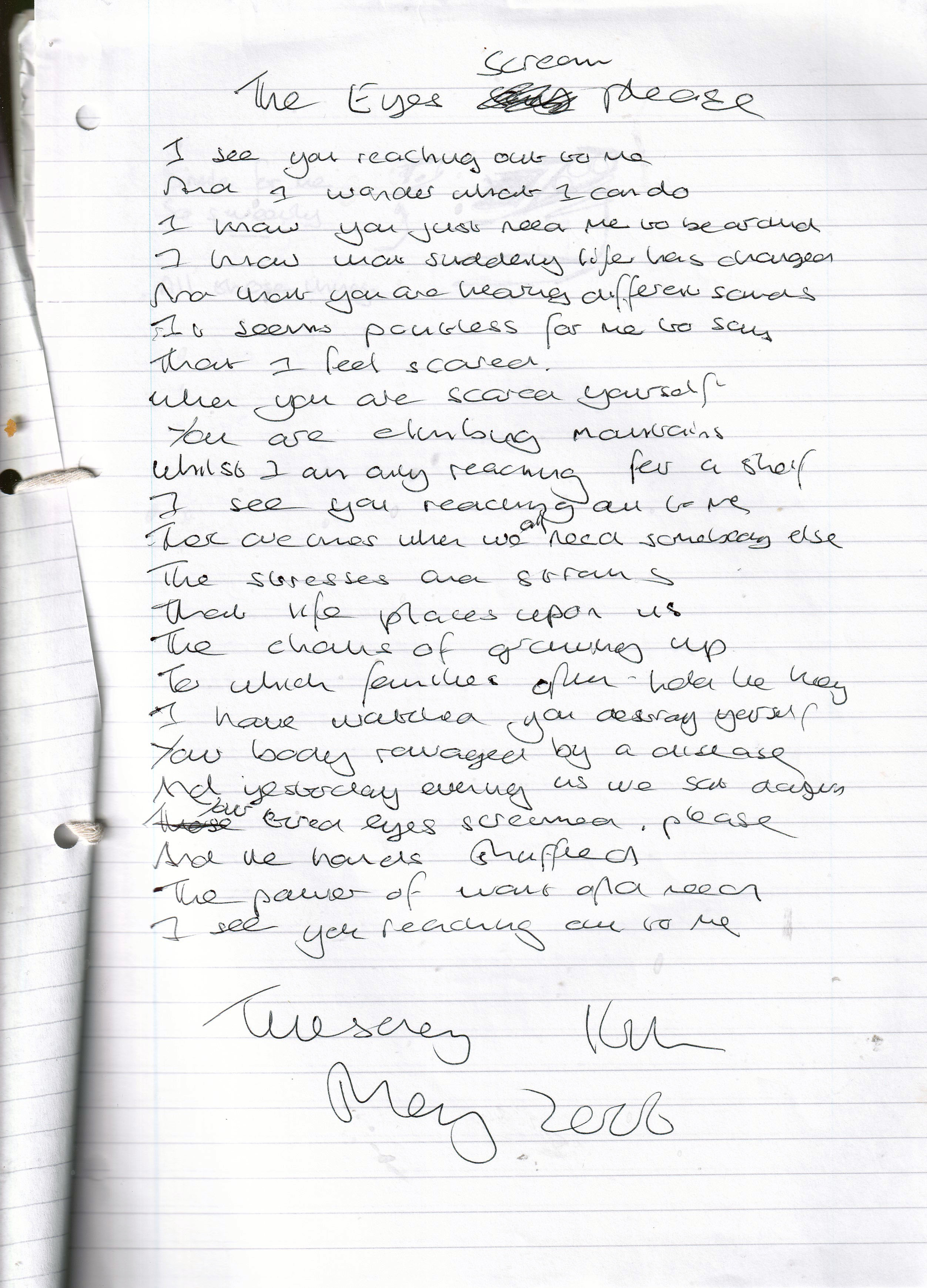 The Eyes Scream Please – Written Tuesday 16th May 2008 (Aged 33)