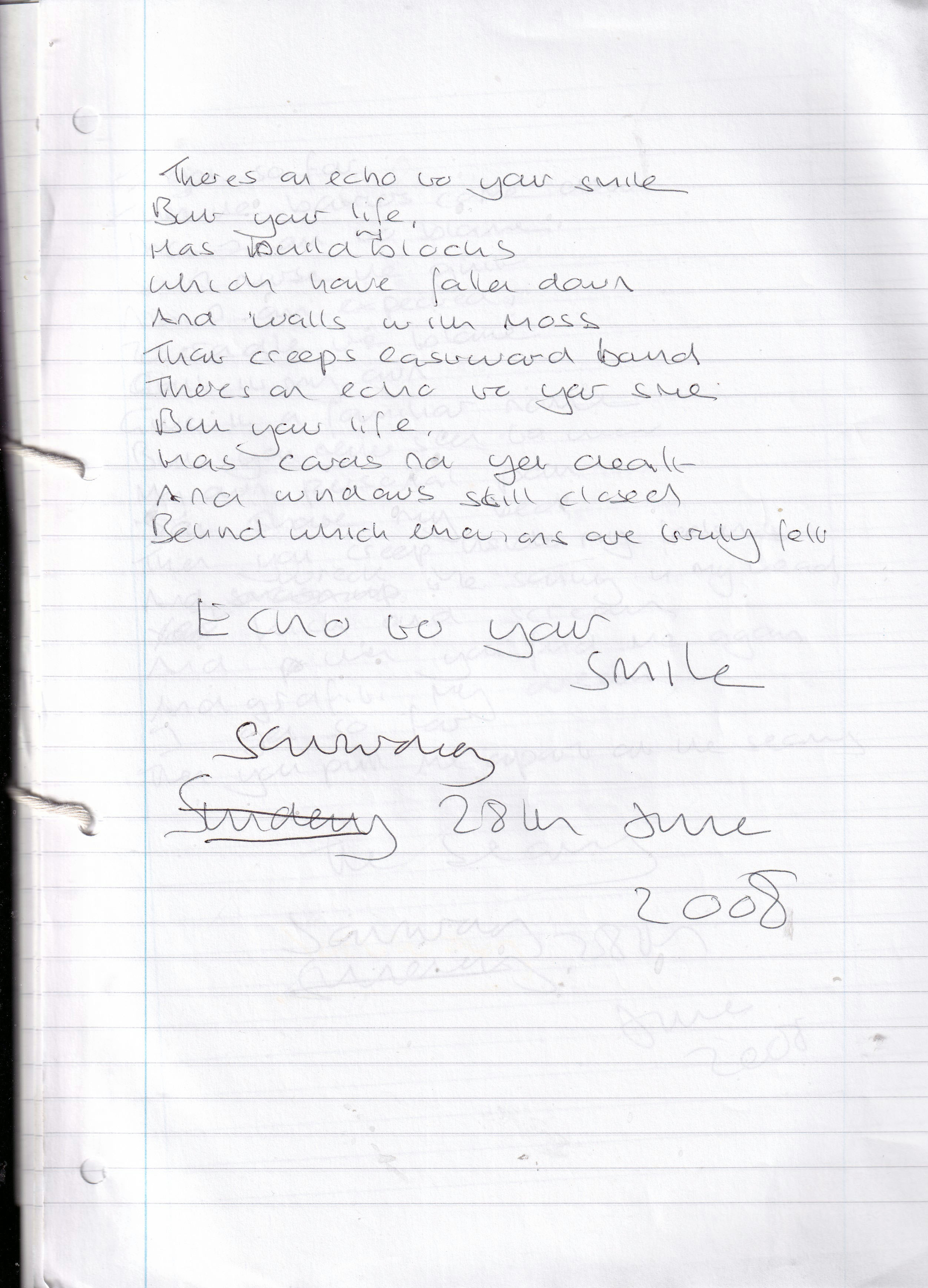 Echo To Your Smile – Written Saturday 28th June 2008 (Aged 33)
