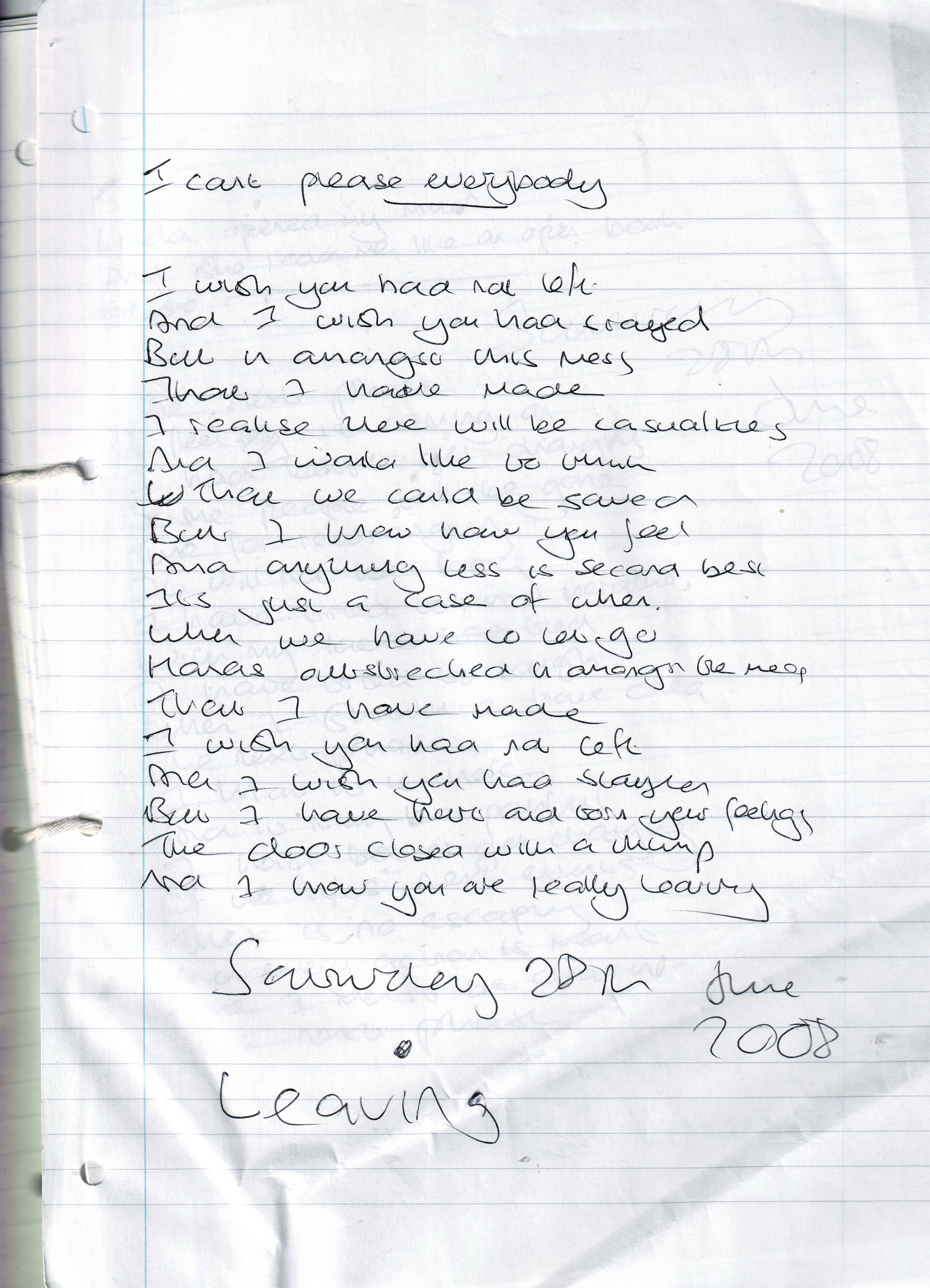 Leaving – Written Saturday 28th June 2008 (Aged 33)