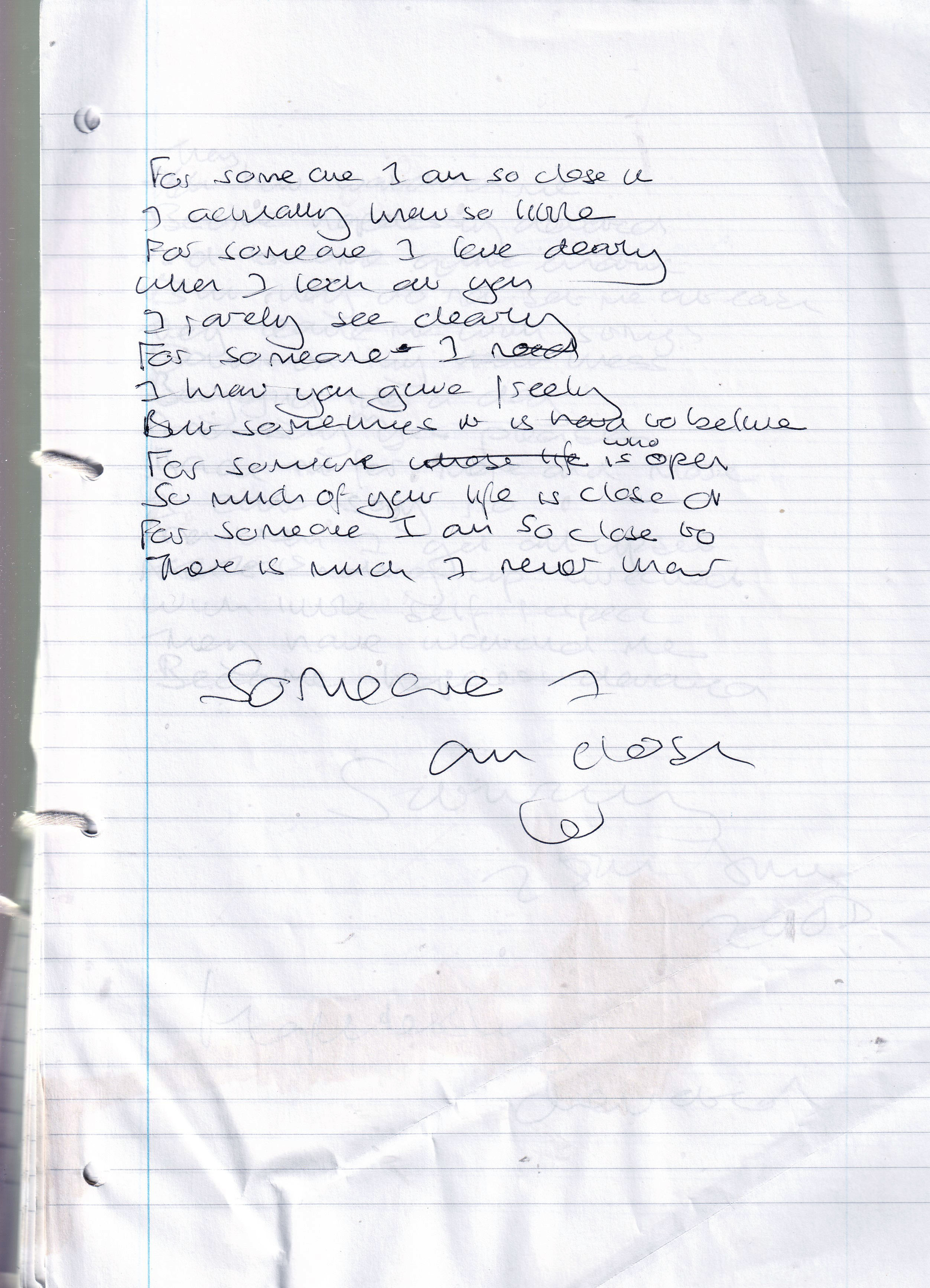 Someone I Am Close To – Written June 2008 (Aged 33)
