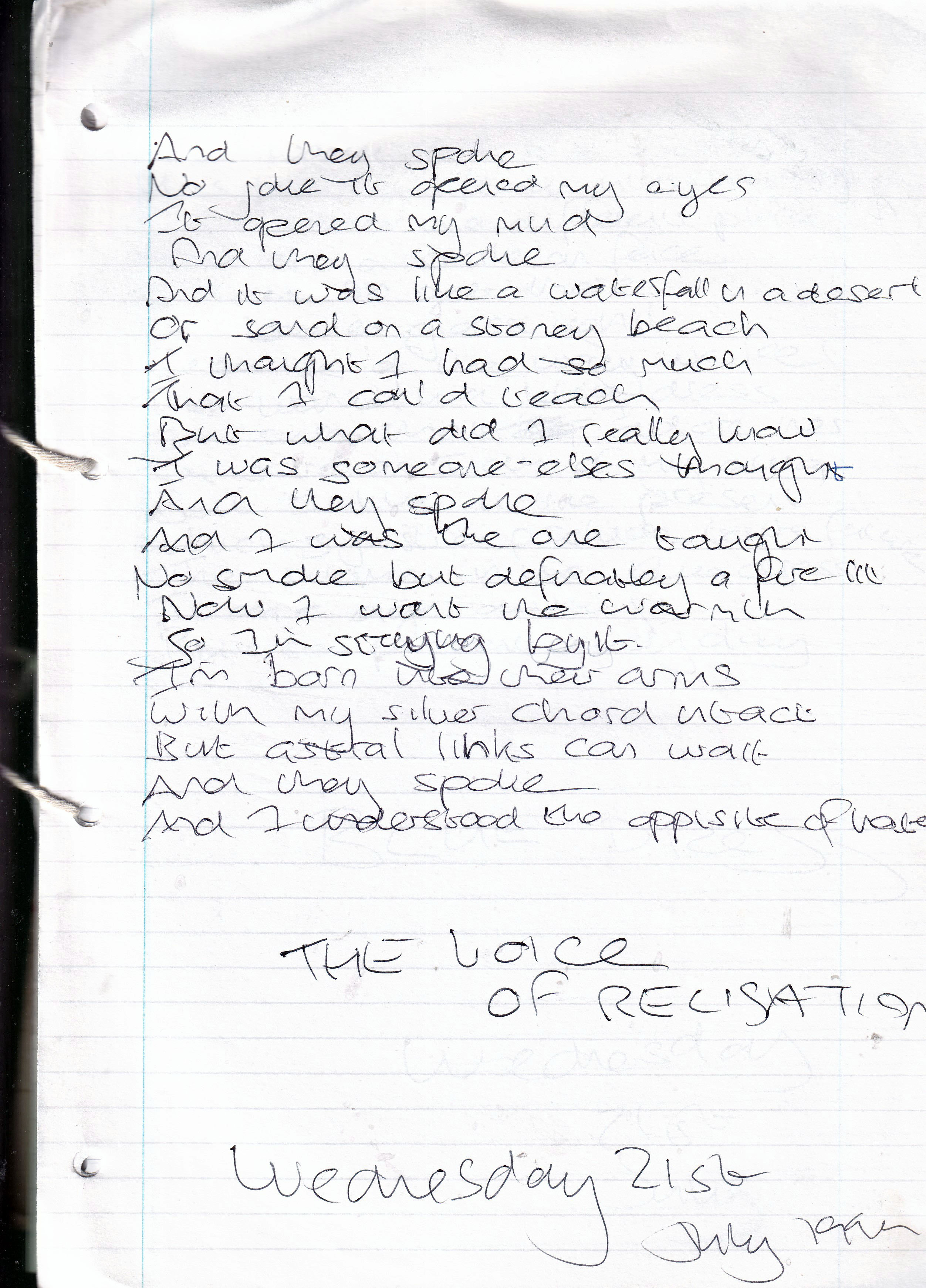 The Voice of Realisation – Written Wednesday 21st July 1999 (Aged 24)