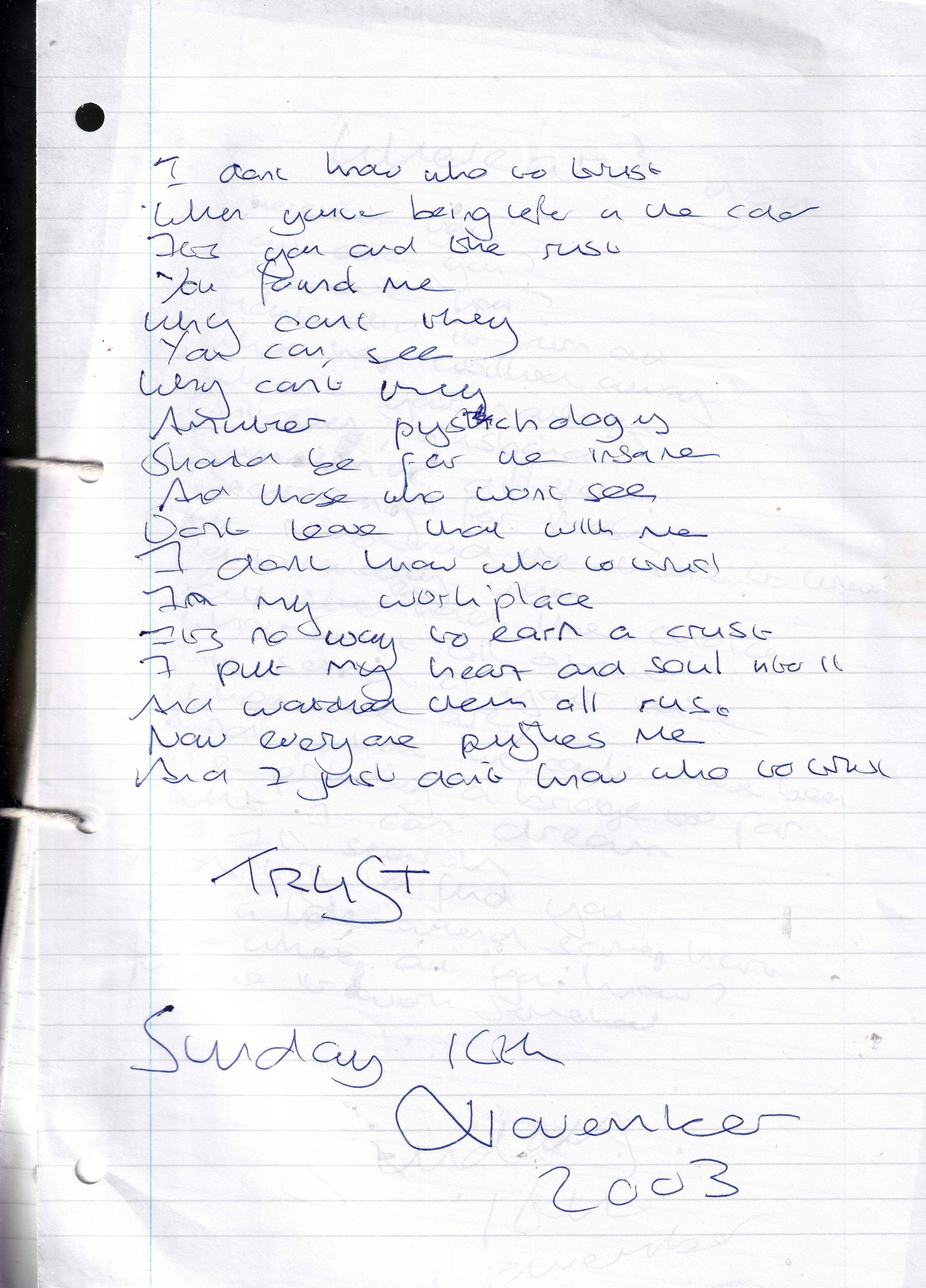 Trust – Written Sunday 16th November 2003 (Aged 28)