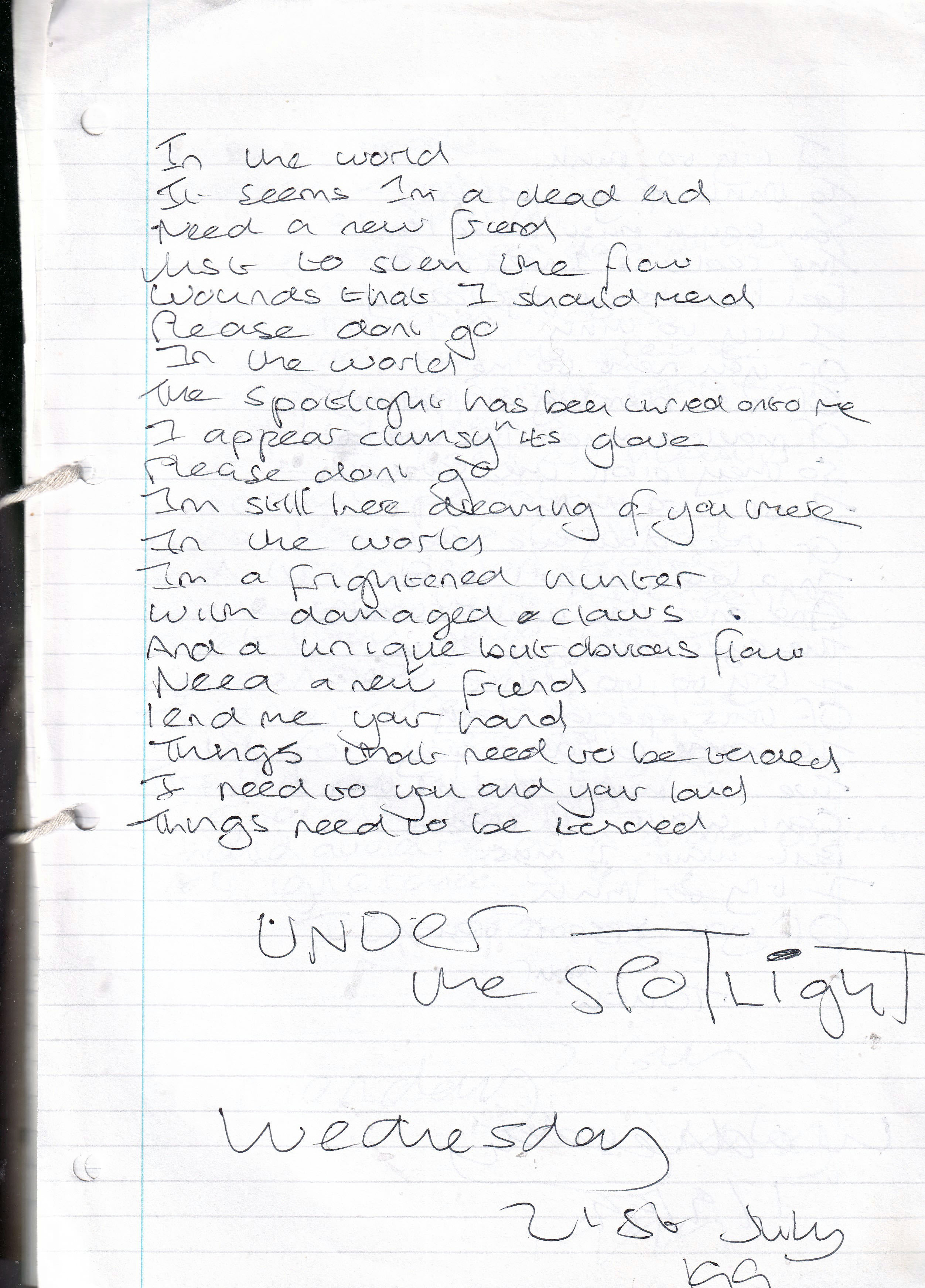 Under the Spotlight – Written Wednesday 21st July 1999 (Aged 24)