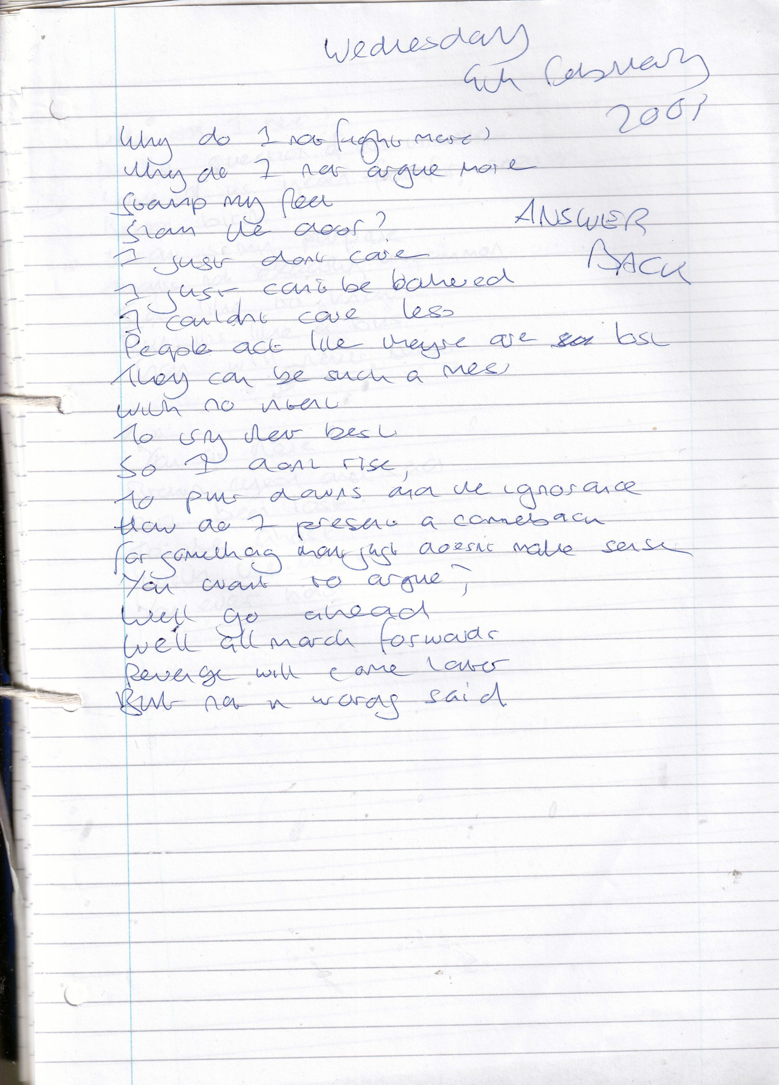 Answer Back – Written Wednesday 9th February 2005 (Aged 29)