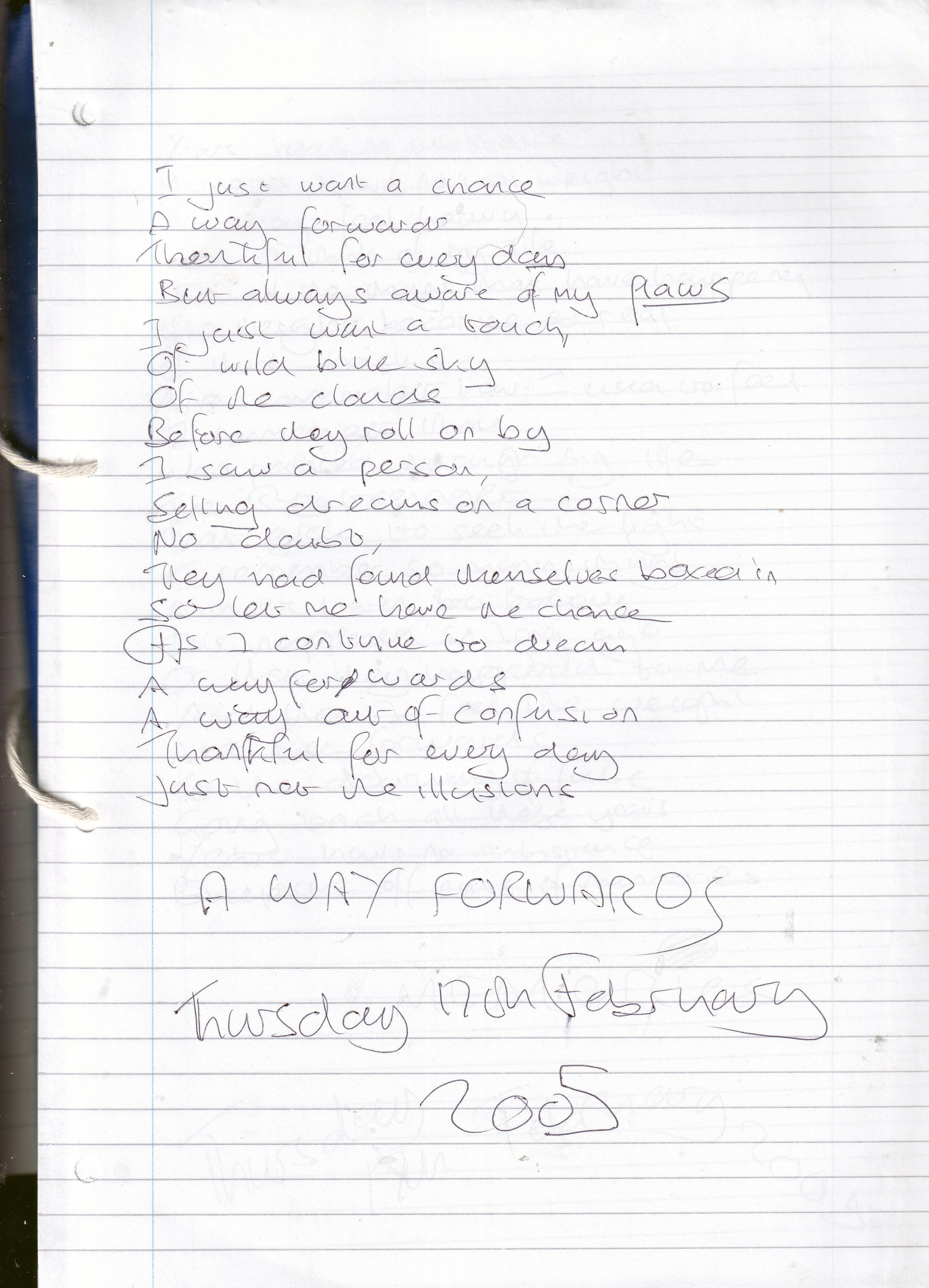 A Way Forwards – Written Thursday 17th February 2005 (Aged 29)