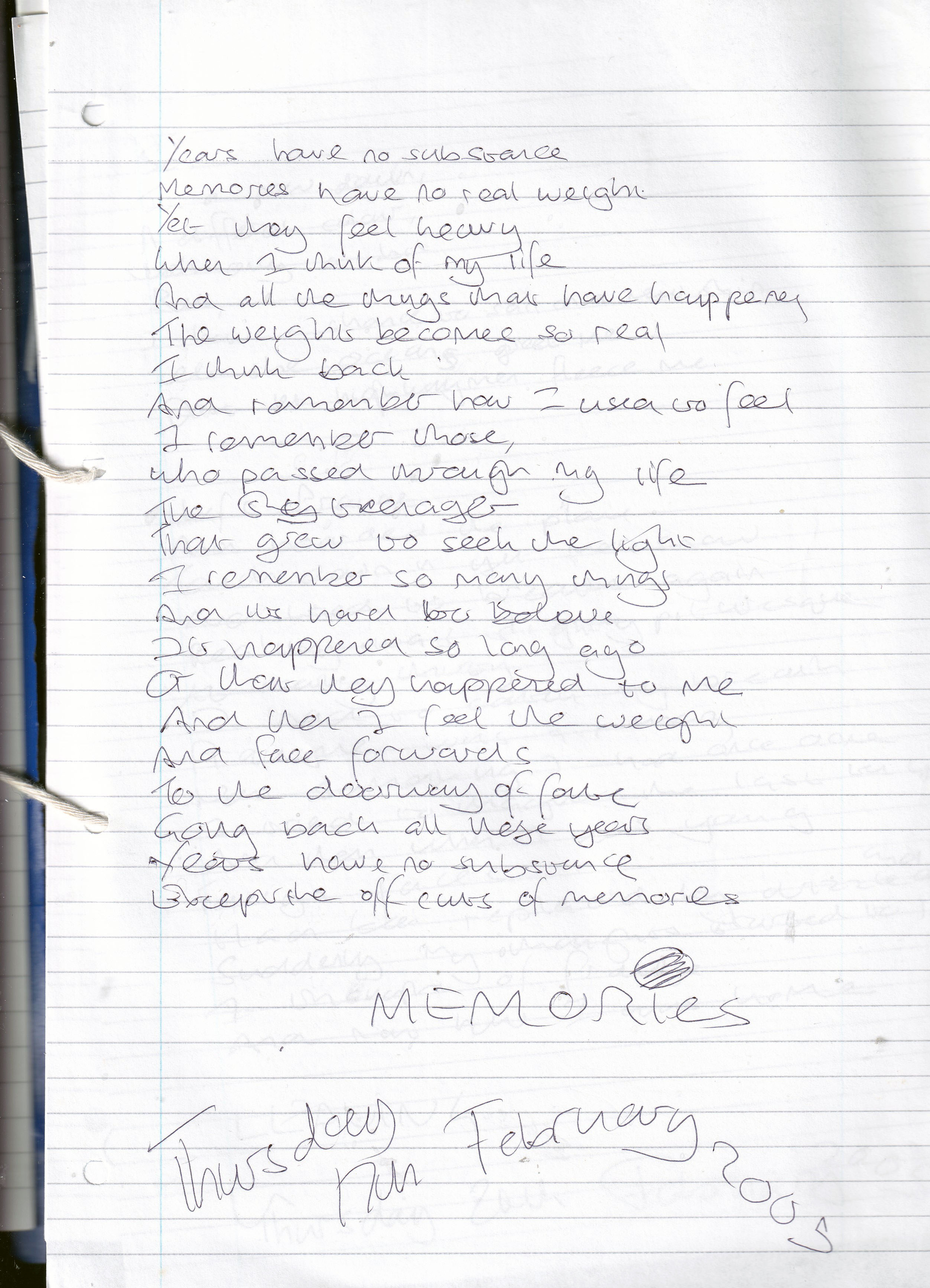 Memories – Written Thursday 17th February 2005 (Aged 29)