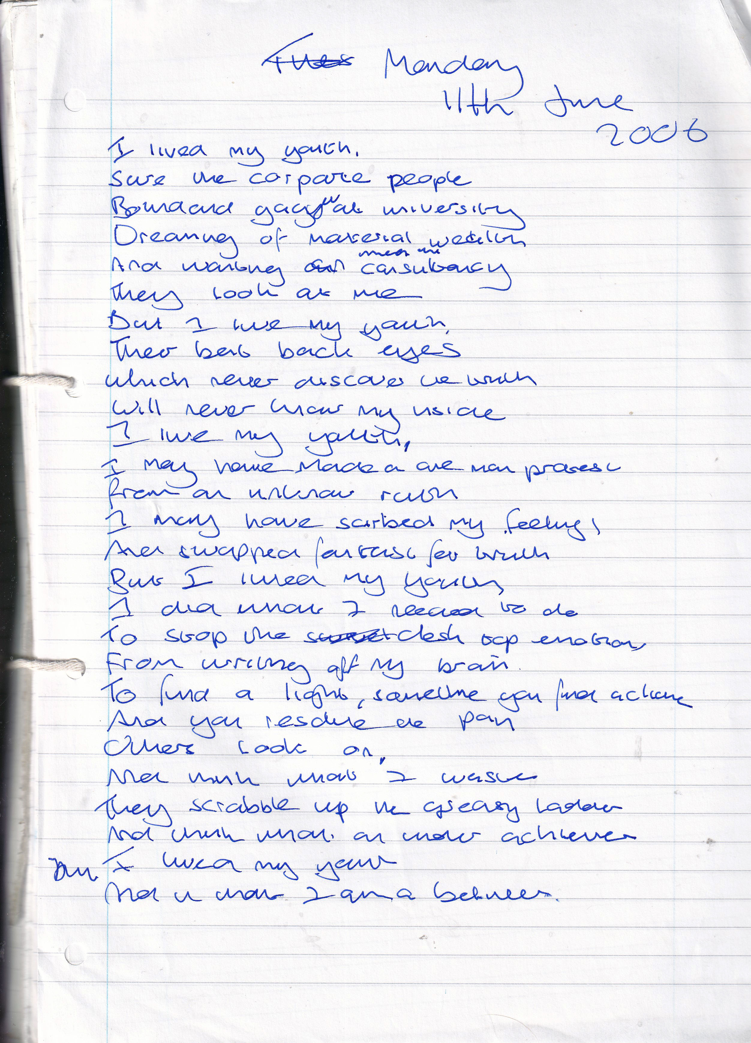I Lived My Youth (Originally Untitled) – Written Monday 1tth June 2006 (Aged 31)