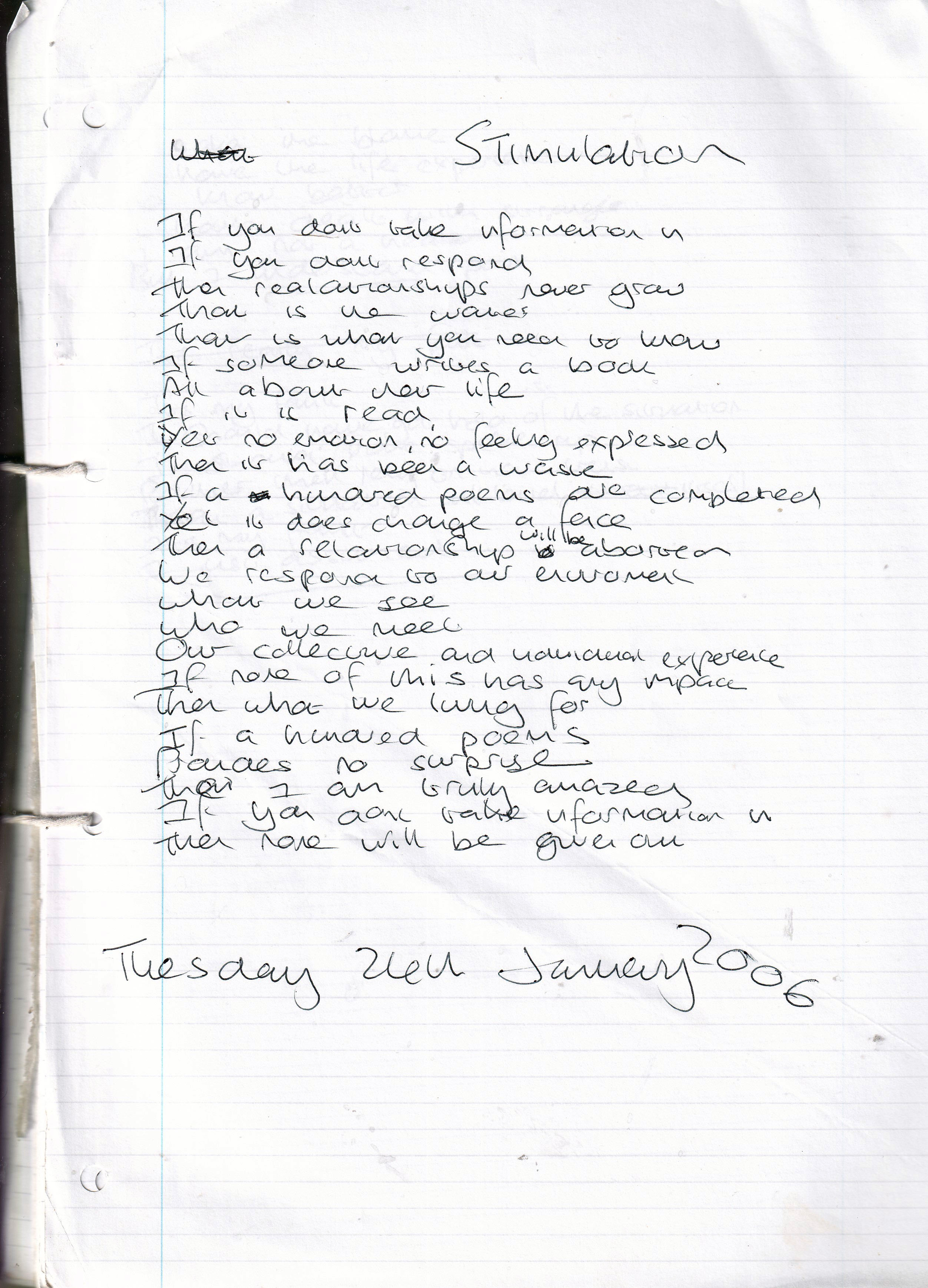 Stimulation – Written Tuesday 24th January 2006 (Aged 30)