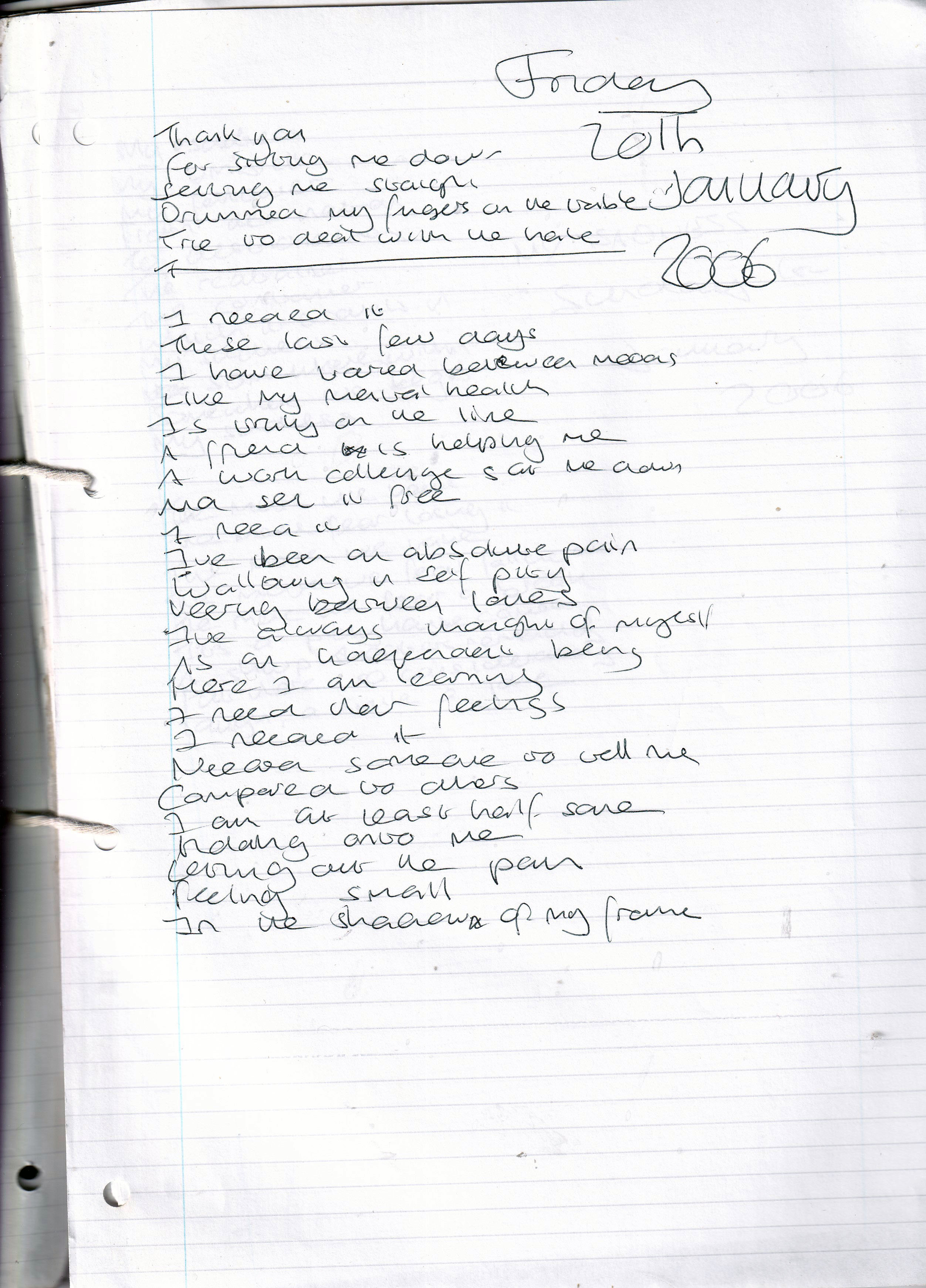 Wellbeing (Originally Untitled) – Written Friday 20th January 2006 (Aged 30)