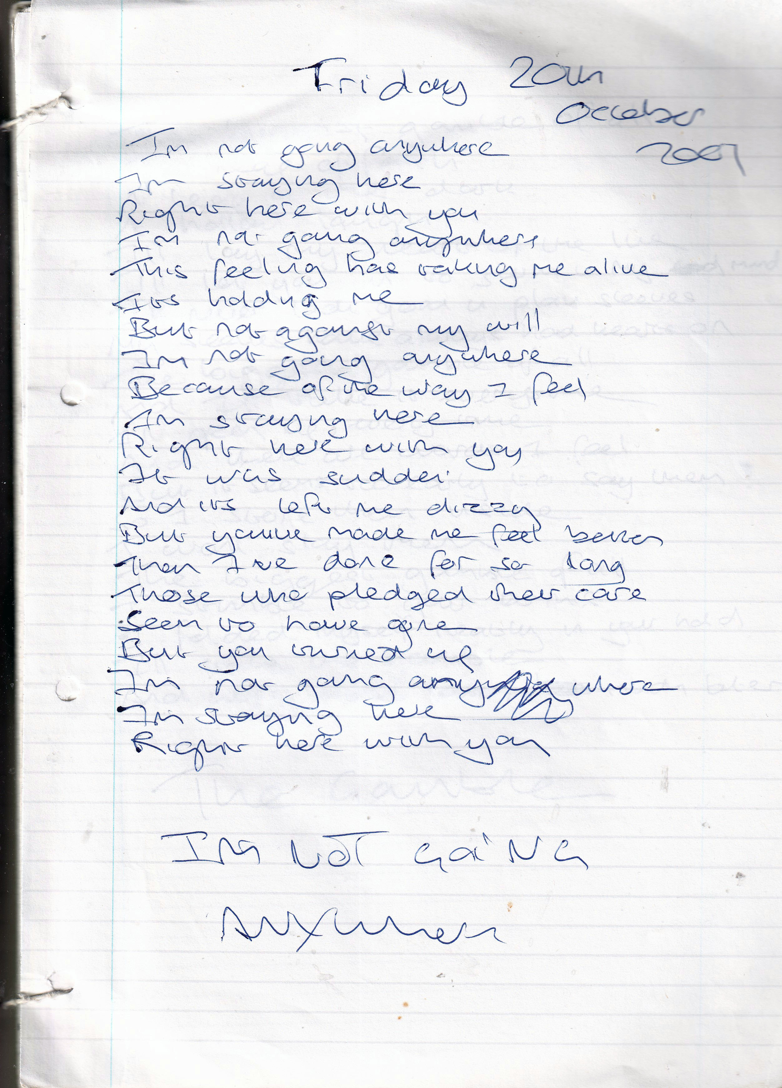 I Am Not Going Anywhere – Written Friday 20th October 2000 (Aged 25)